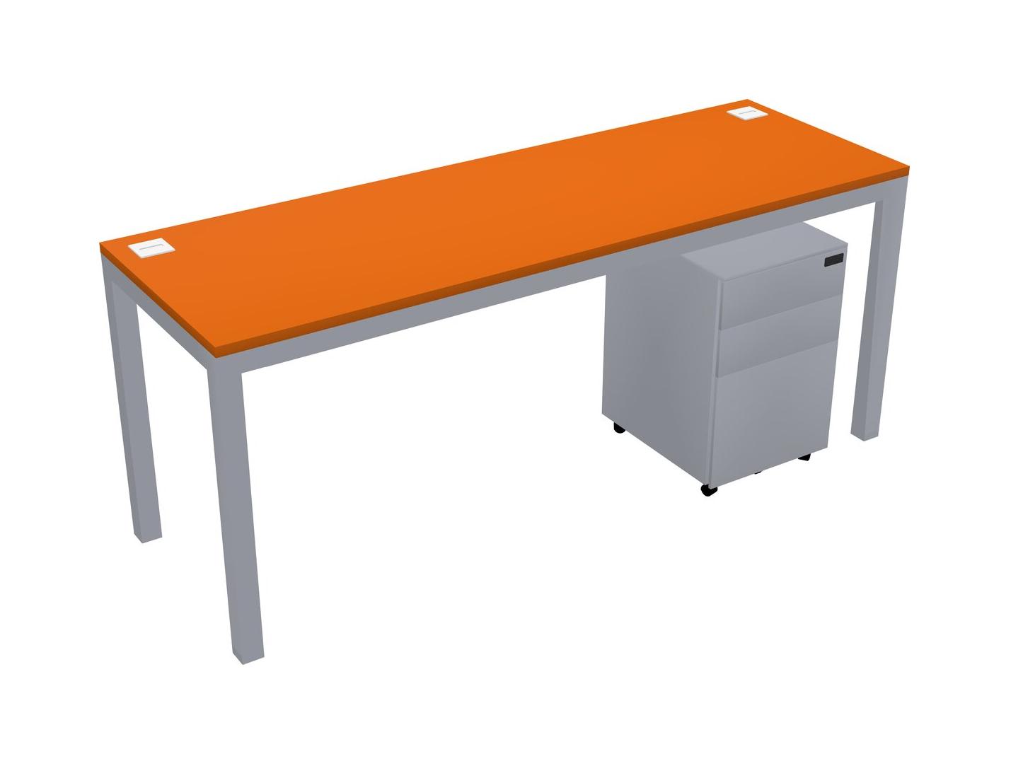Orange Rectangular Office Desk With Metal Mobile Drawers For 1 Persons