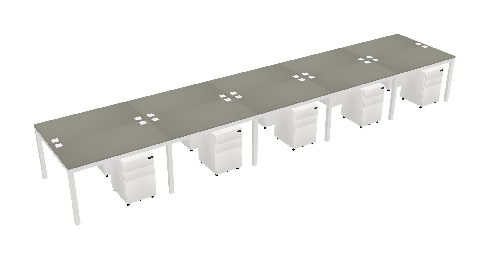 Grey Shadows Shared Rectangular Office Desk With Metal Mobile Drawers For 10 Persons