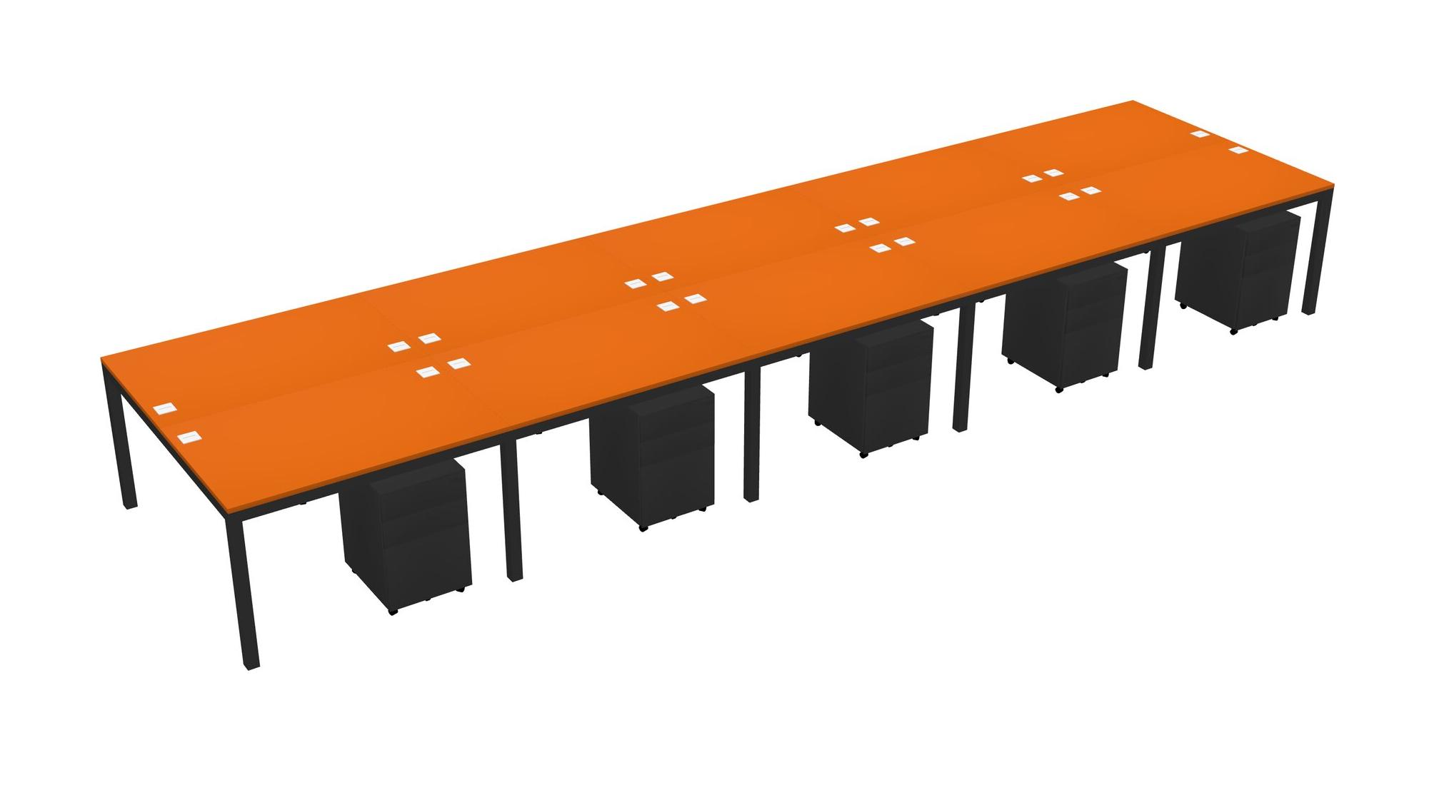 Orange Shared Rectangular Office Desk With Metal Mobile Drawers For 10 Persons