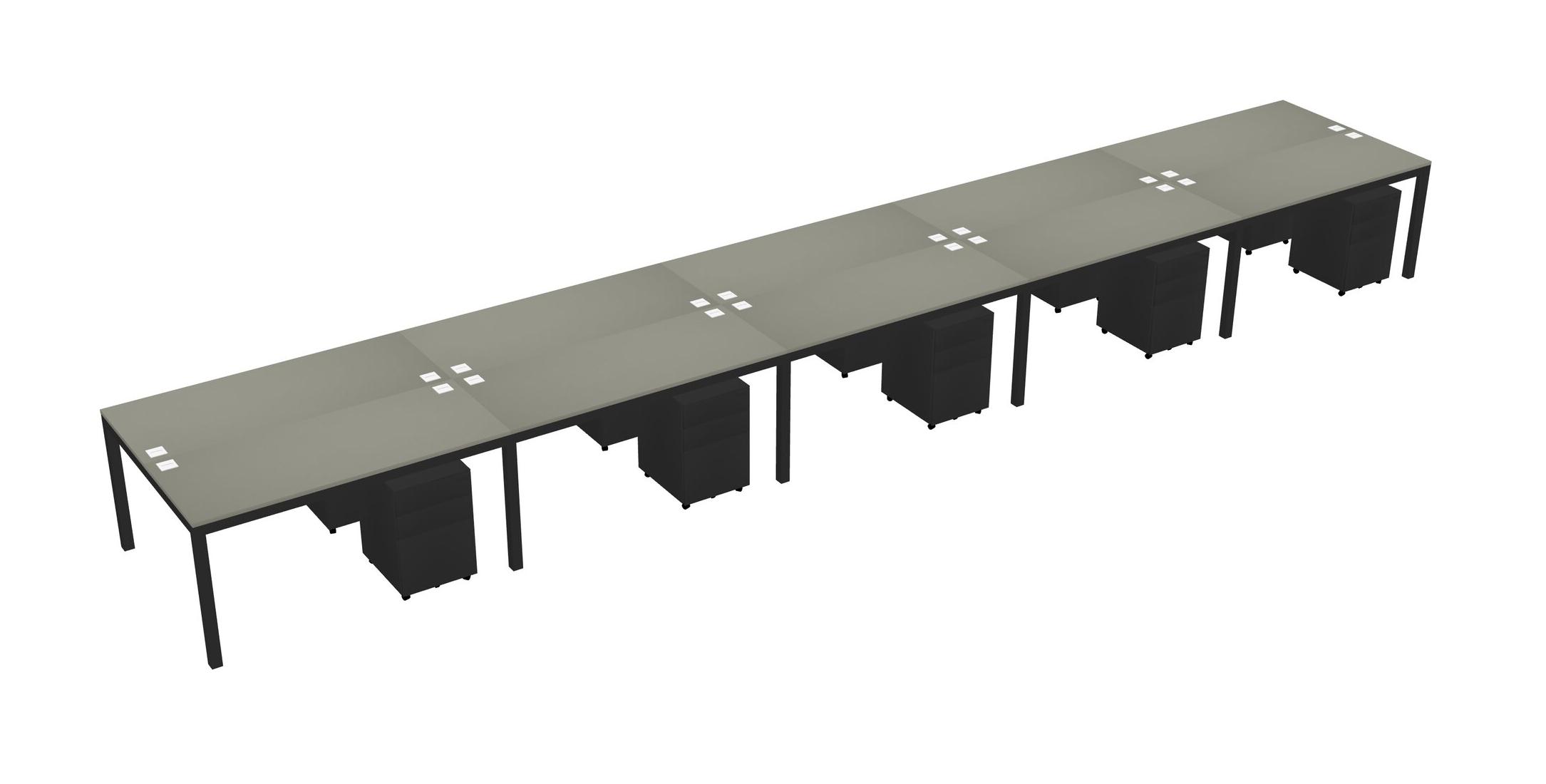 Grey Shadows Shared Rectangular Office Desk With Metal Mobile Drawers For 10 Persons