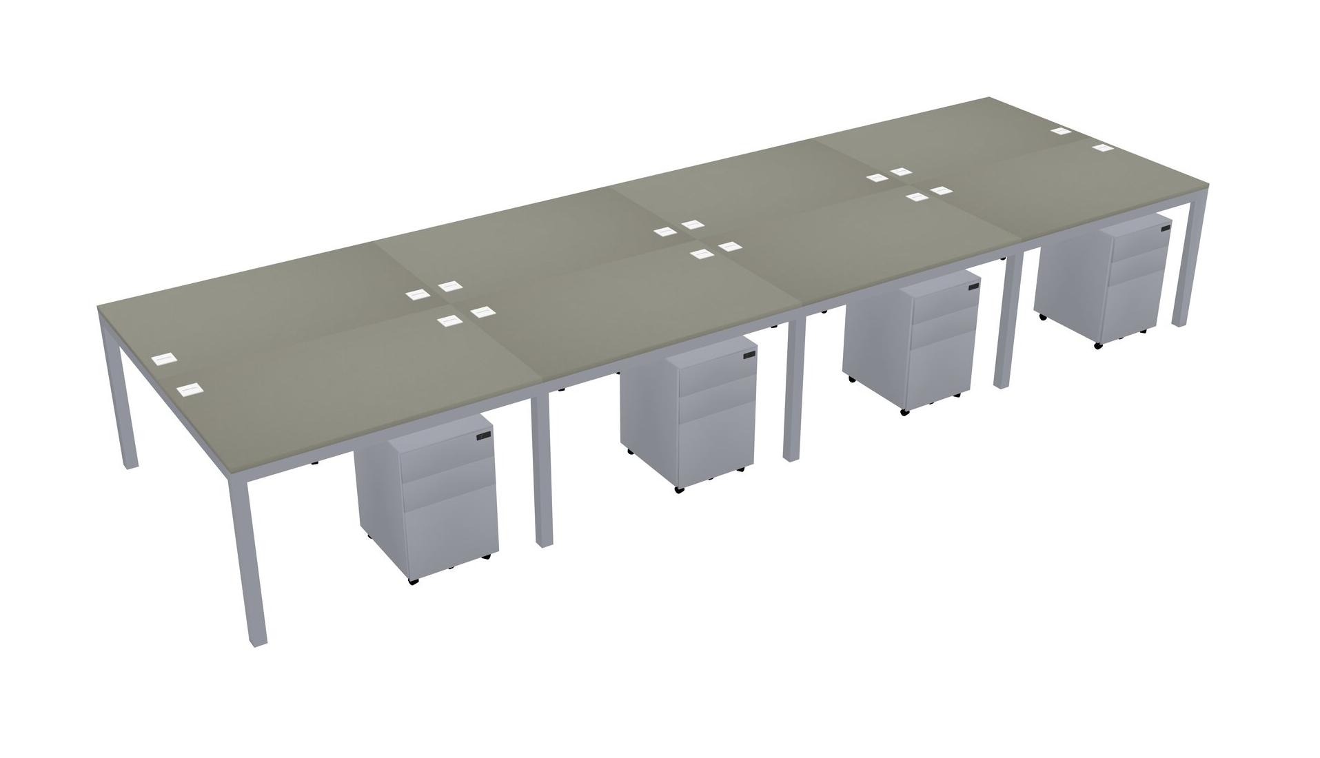 Grey Shadows Shared Rectangular Office Desk With Metal Mobile Drawers For 8 Persons