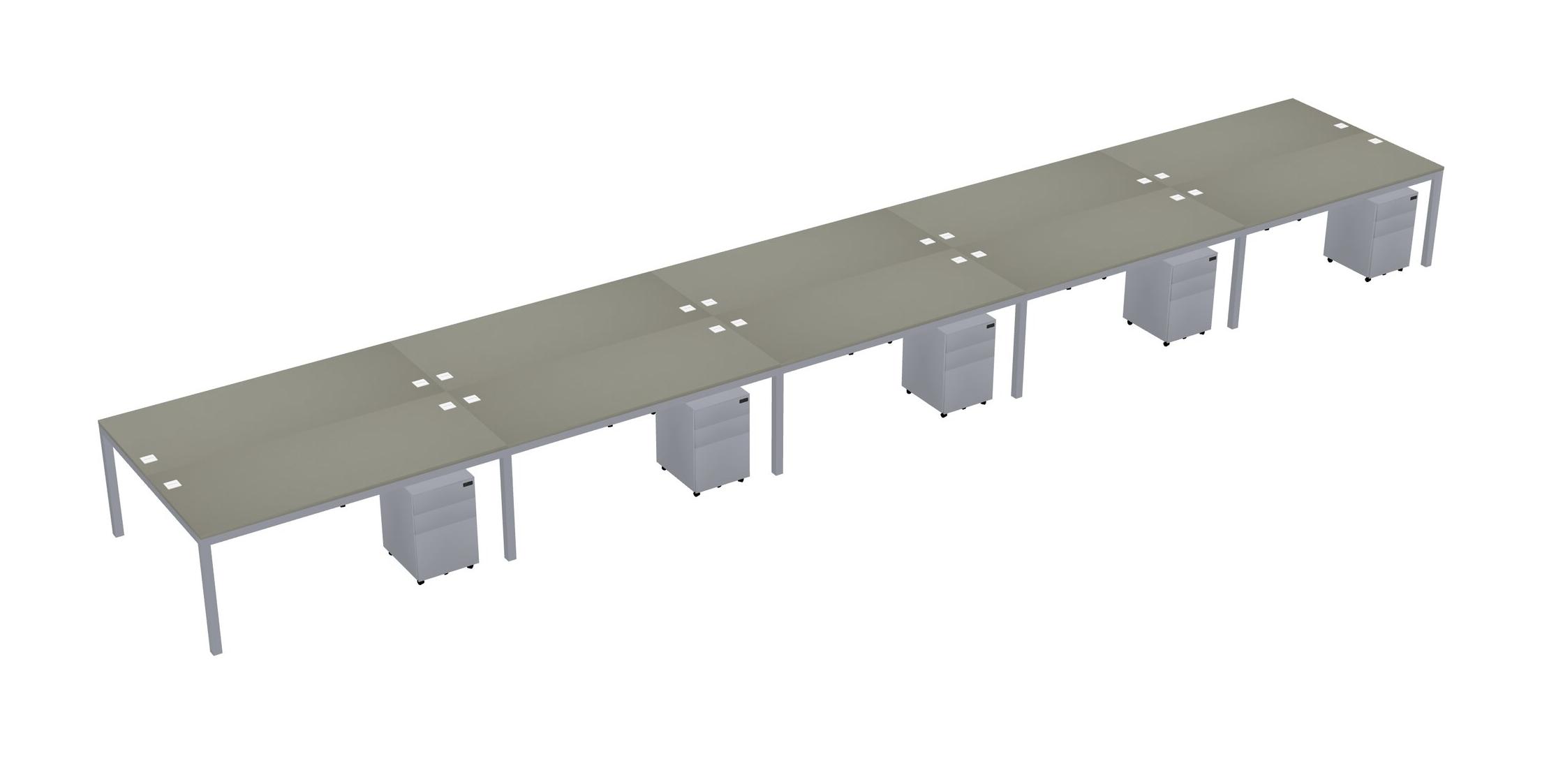 Grey Shadows Shared Rectangular Office Desk With Metal Mobile Drawers For 10 Persons