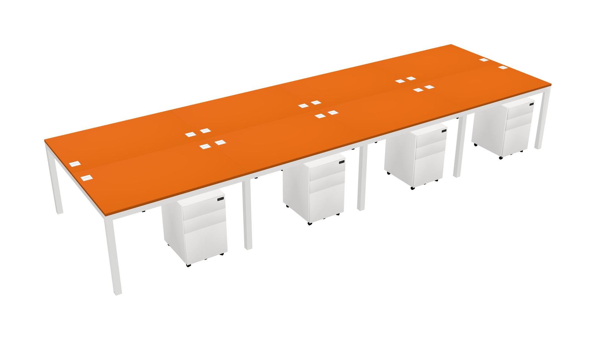 Orange Shared Rectangular Office Desk With Metal Mobile Drawers For 8 Persons