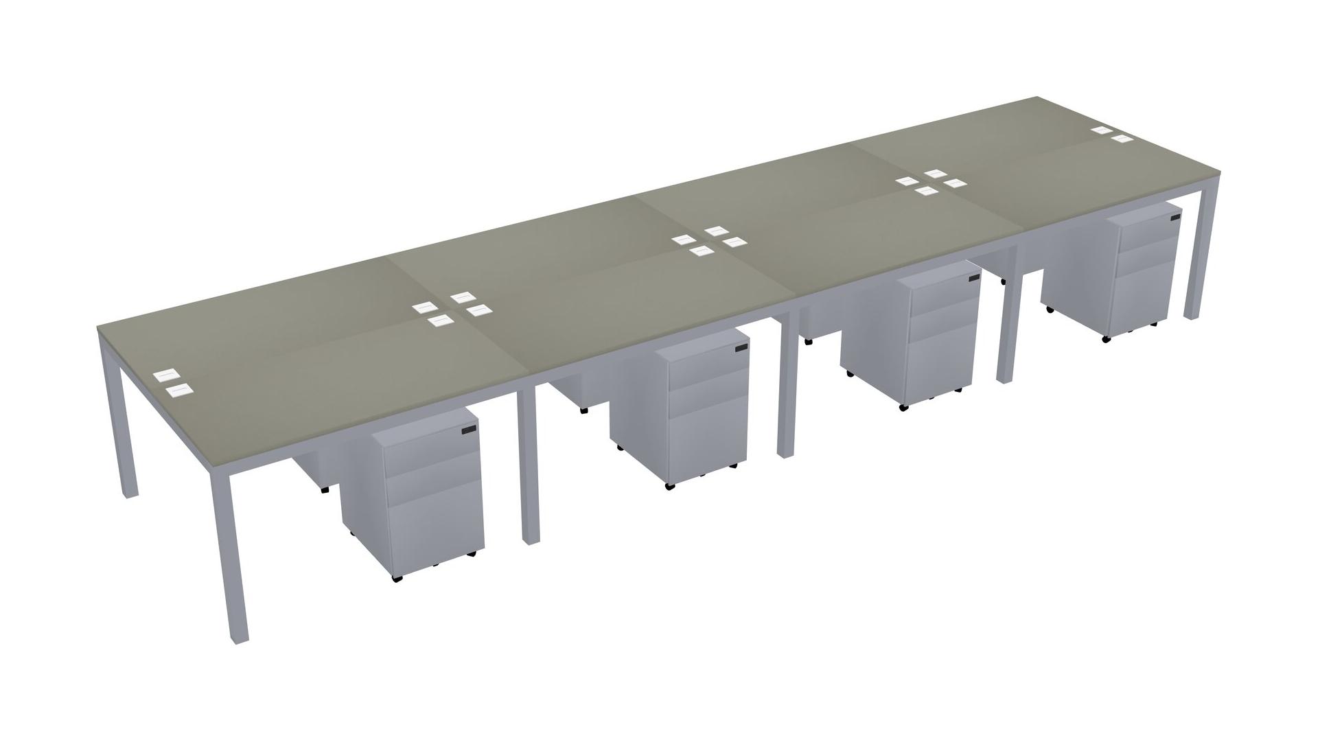 Grey Shadows Shared Rectangular Office Desk With Metal Mobile Drawers For 8 Persons