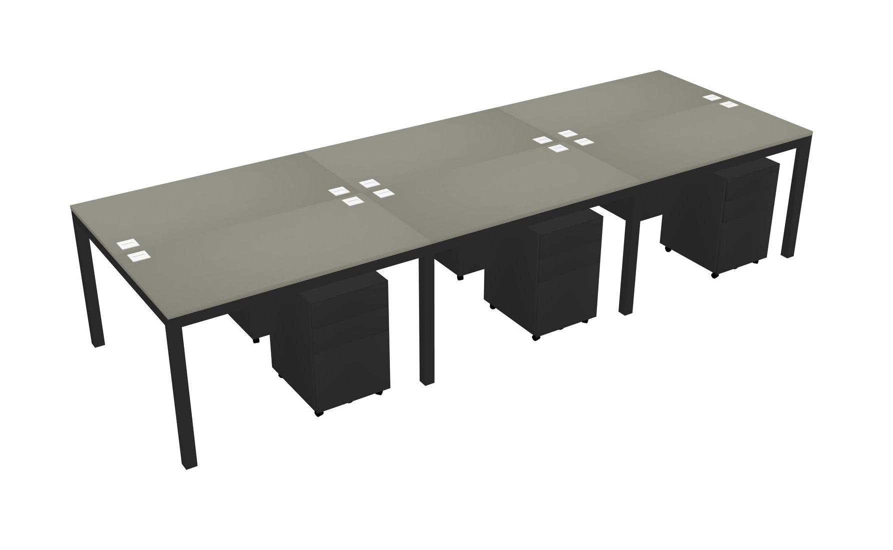 Grey Shadows Shared Rectangular Office Desk With Metal Mobile Drawers For 6 Persons