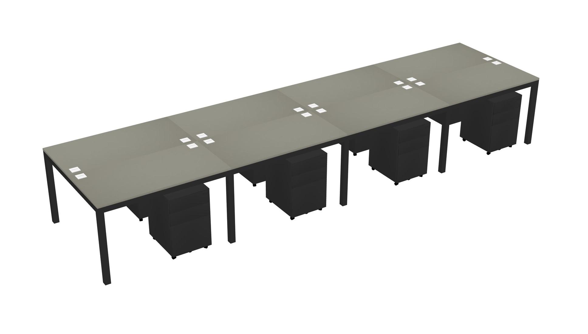 Grey Shadows Shared Rectangular Office Desk With Metal Mobile Drawers For 8 Persons