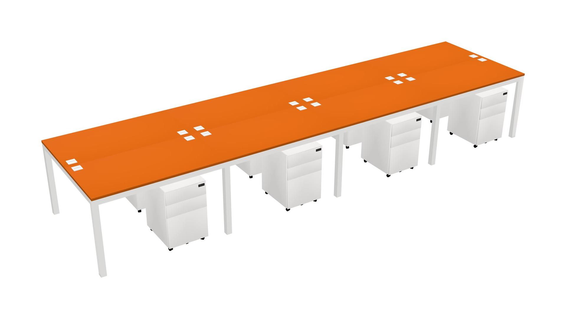 Orange Shared Rectangular Office Desk With Metal Mobile Drawers For 8 Persons
