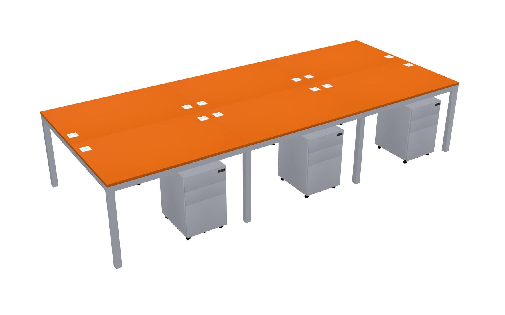 Orange Shared Rectangular Office Desk With Metal Mobile Drawers For 6 Persons