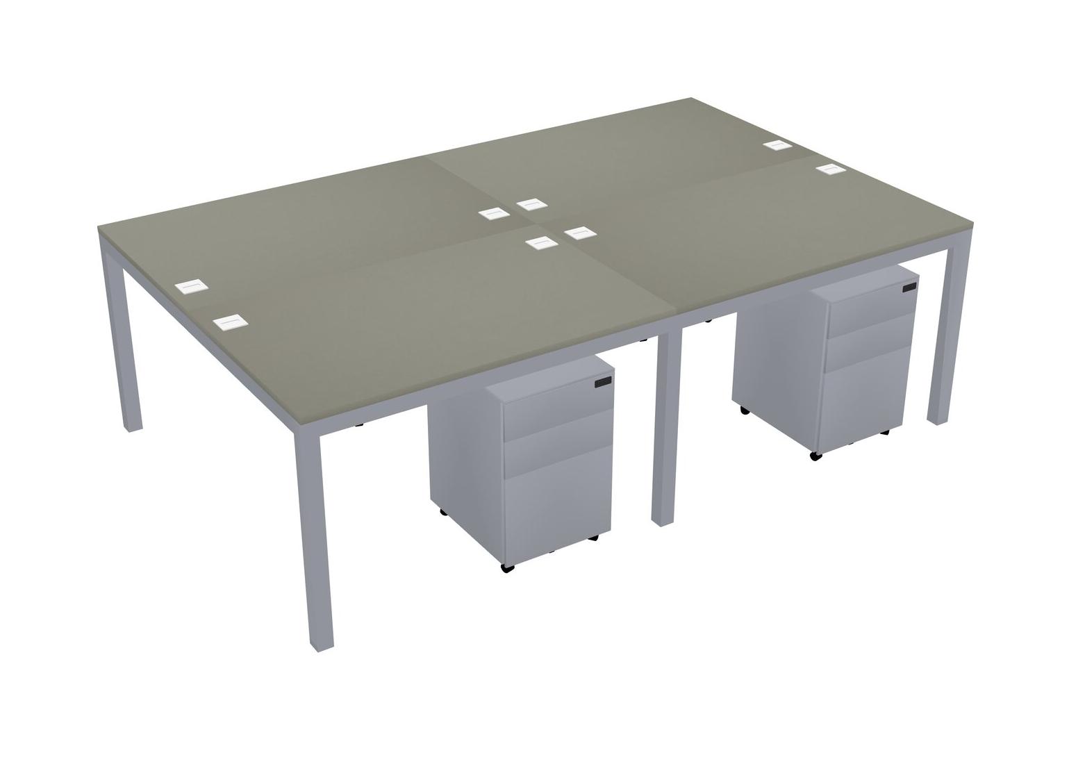 Grey Shadows Shared Rectangular Office Desk With Metal Mobile Drawers For 4 Persons