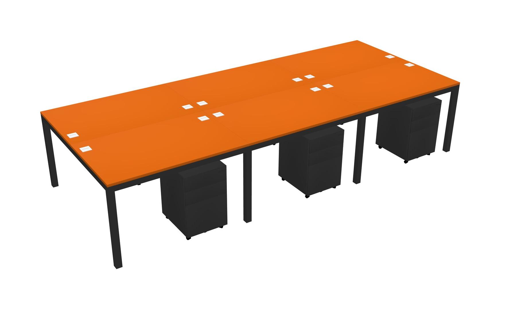 Orange Shared Rectangular Office Desk With Metal Mobile Drawers For 6 Persons