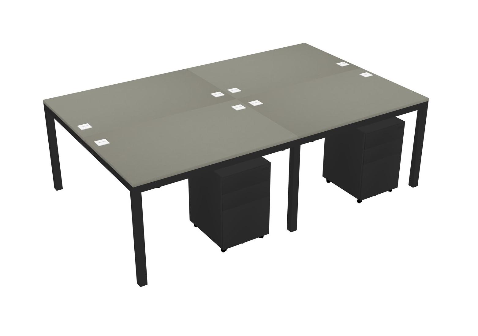 Grey Shadows Shared Rectangular Office Desk With Metal Mobile Drawers For 4 Persons