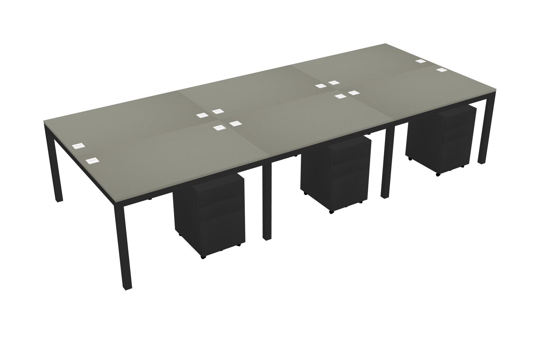 Grey Shadows Shared Rectangular Office Desk With Metal Mobile Drawers For 6 Persons