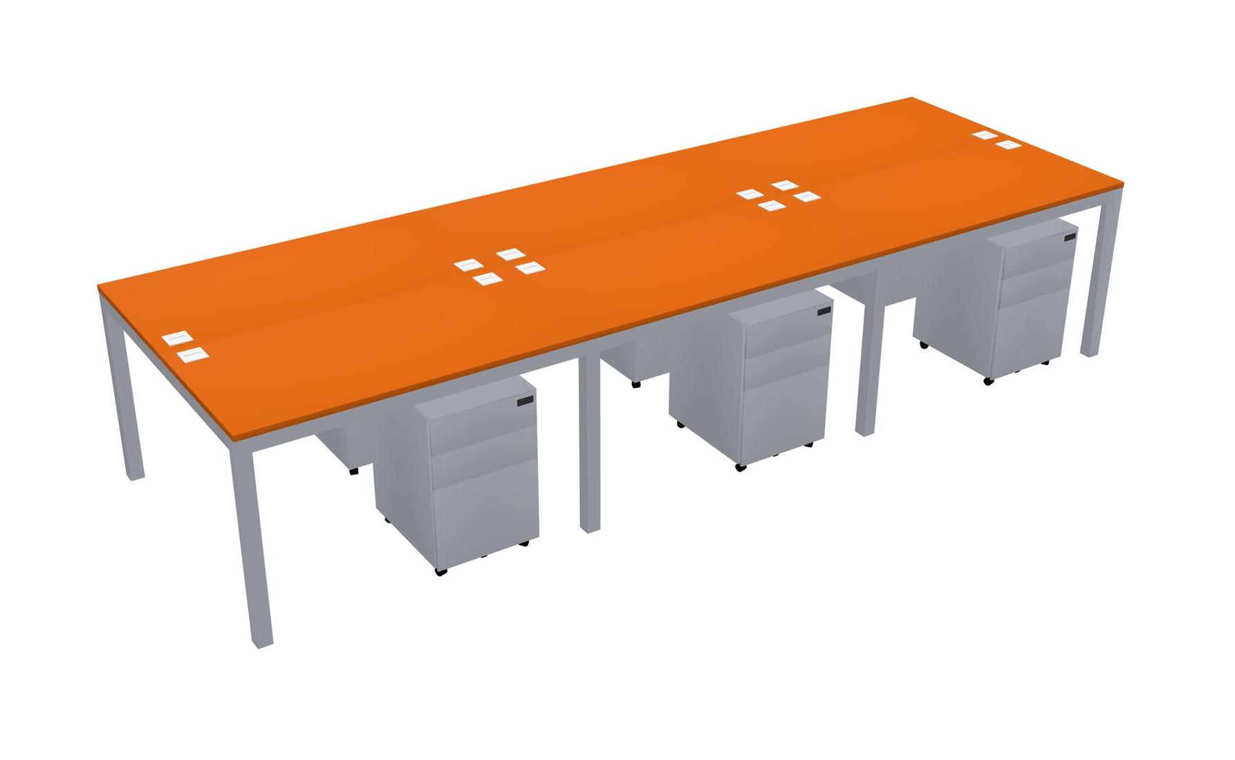 Orange Shared Rectangular Office Desk With Metal Mobile Drawers For 6 Persons