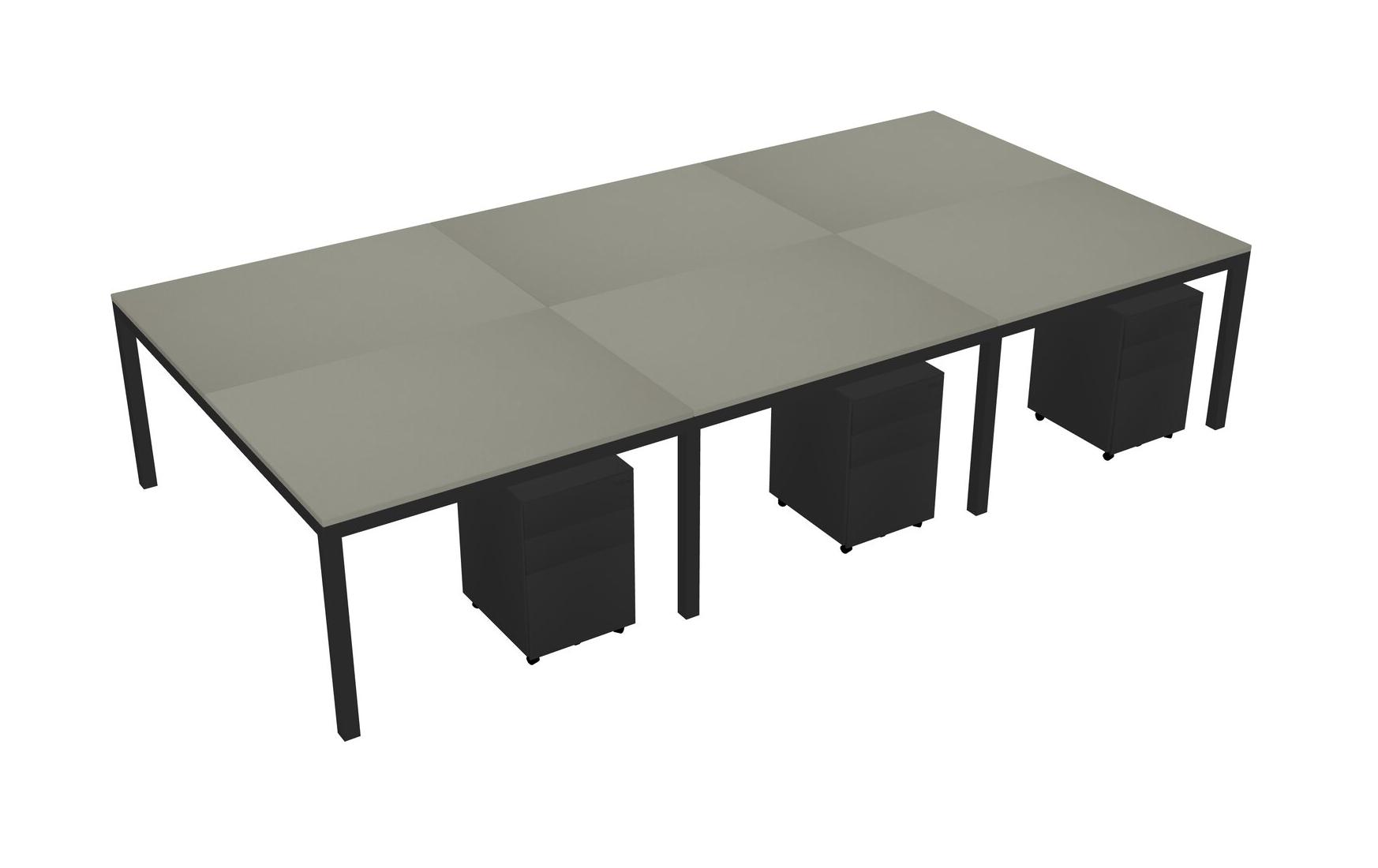 Grey Shadows Shared Rectangular Office Desk With Metal Mobile Drawers For 6 Persons