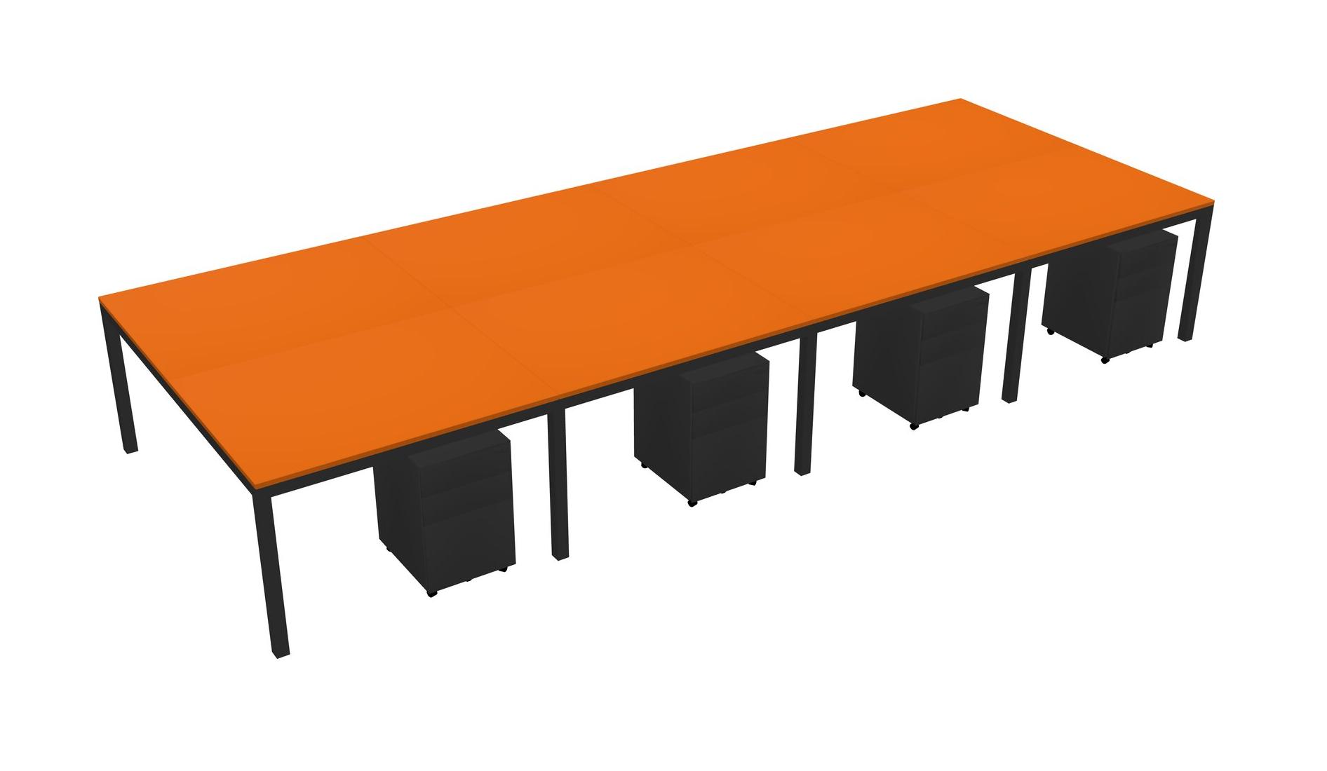 Orange Shared Rectangular Office Desk With Metal Mobile Drawers For 8 Persons