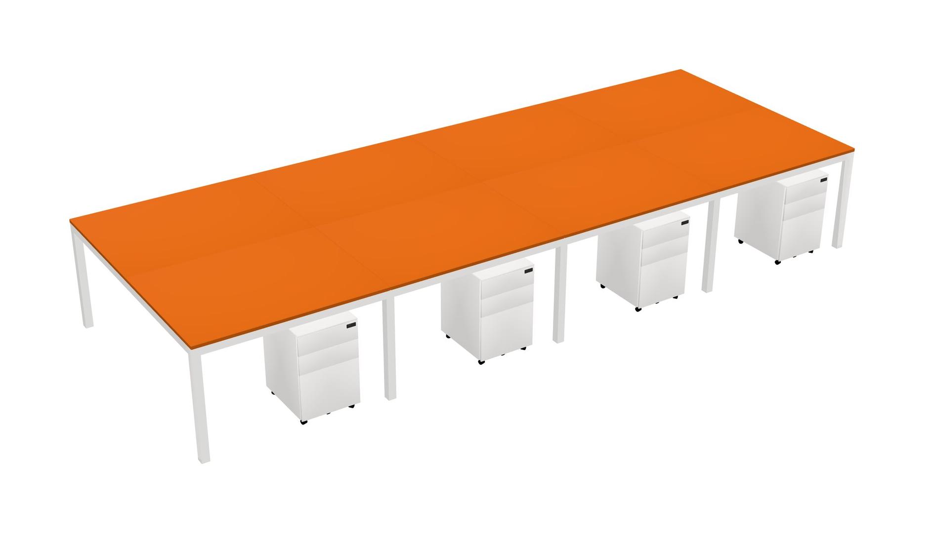 Orange Shared Rectangular Office Desk With Metal Mobile Drawers For 8 Persons