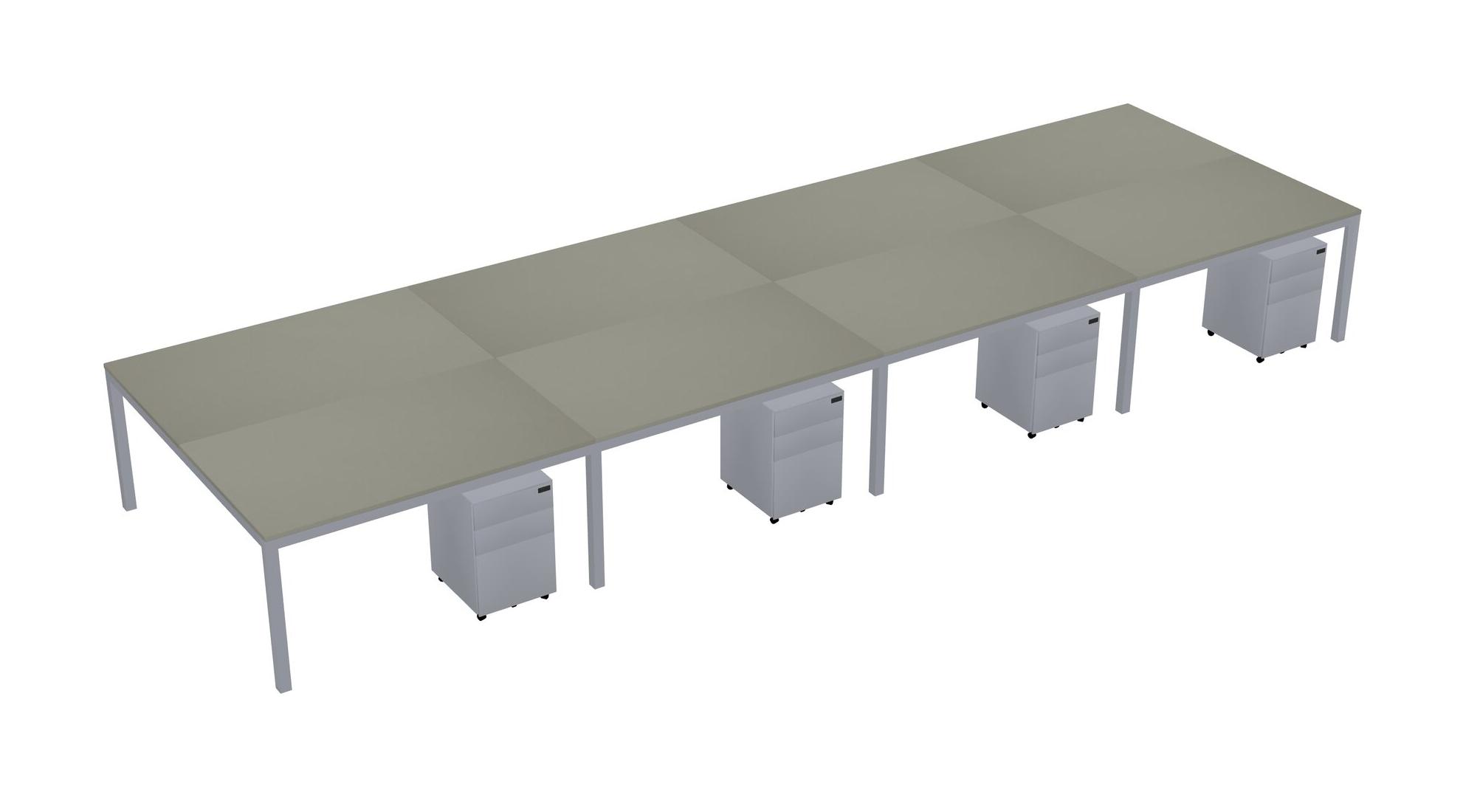 Grey Shadows Shared Rectangular Office Desk With Metal Mobile Drawers For 8 Persons