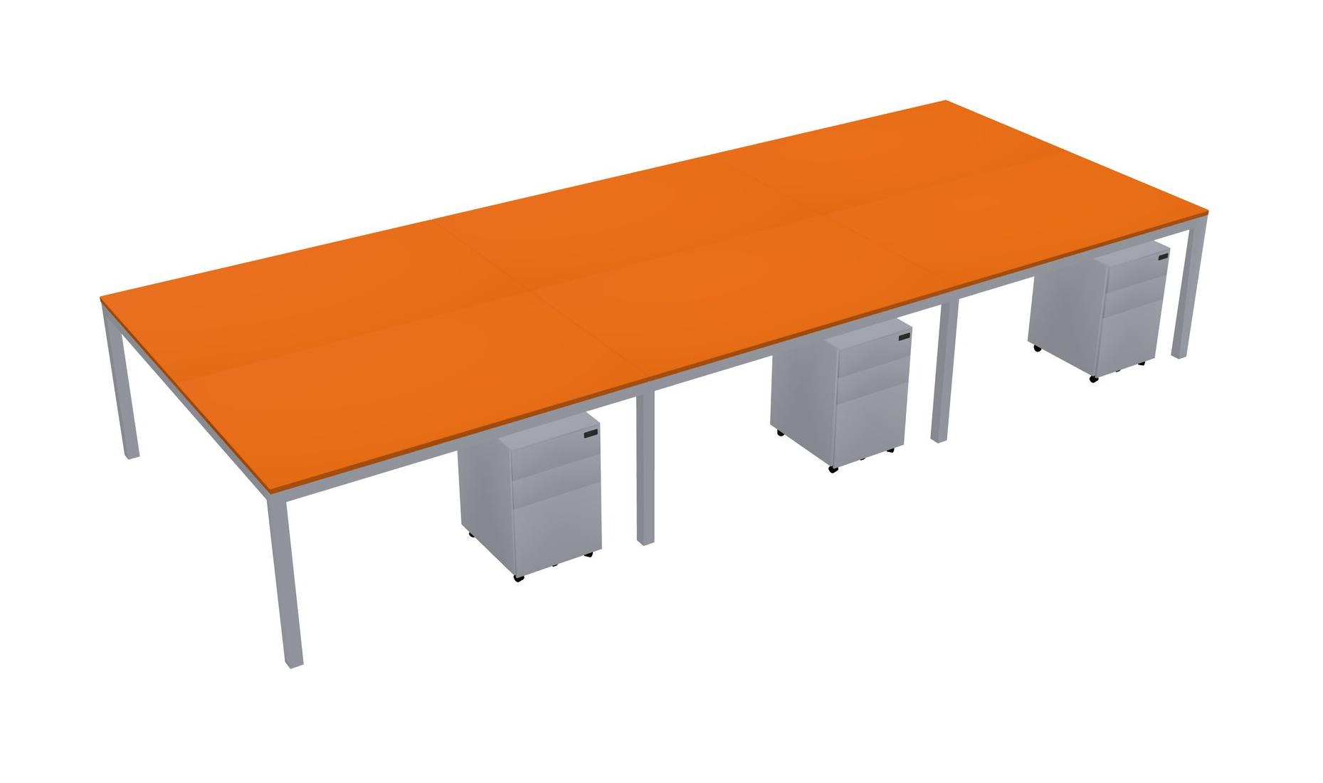 Orange Shared Rectangular Office Desk With Metal Mobile Drawers For 6 Persons