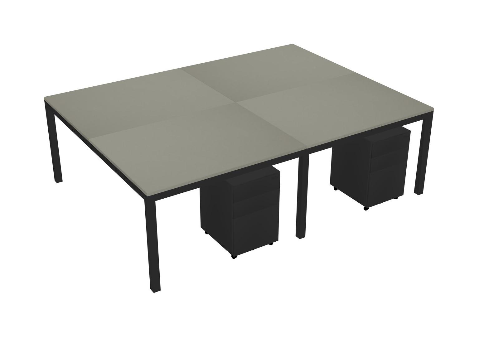 Grey Shadows Shared Rectangular Office Desk With Metal Mobile Drawers For 4 Persons