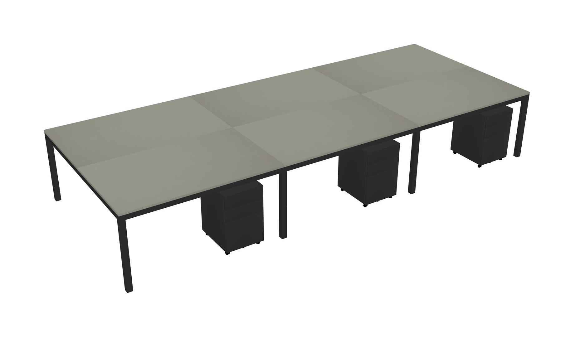 Grey Shadows Shared Rectangular Office Desk With Metal Mobile Drawers For 6 Persons
