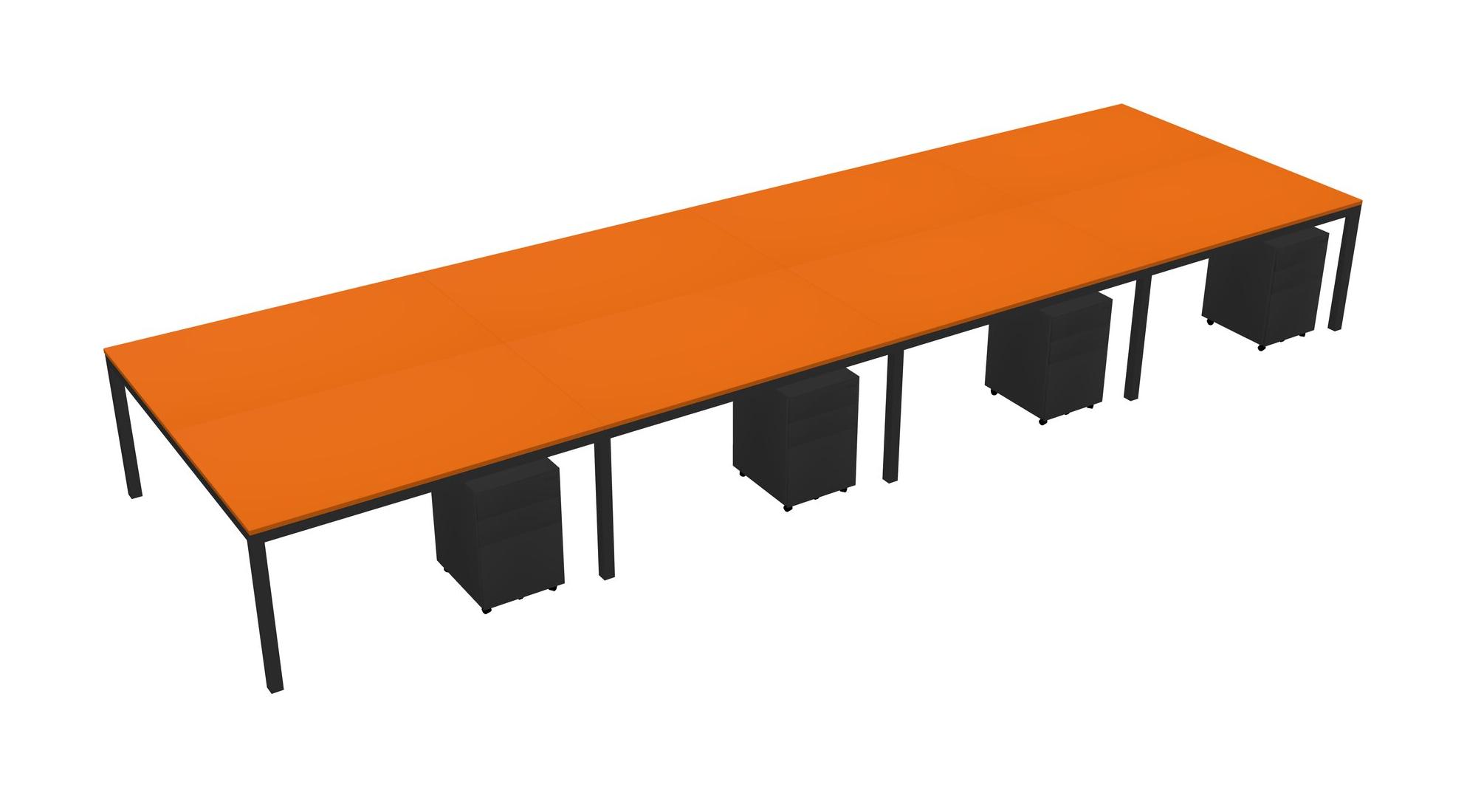 Orange Shared Rectangular Office Desk With Metal Mobile Drawers For 8 Persons