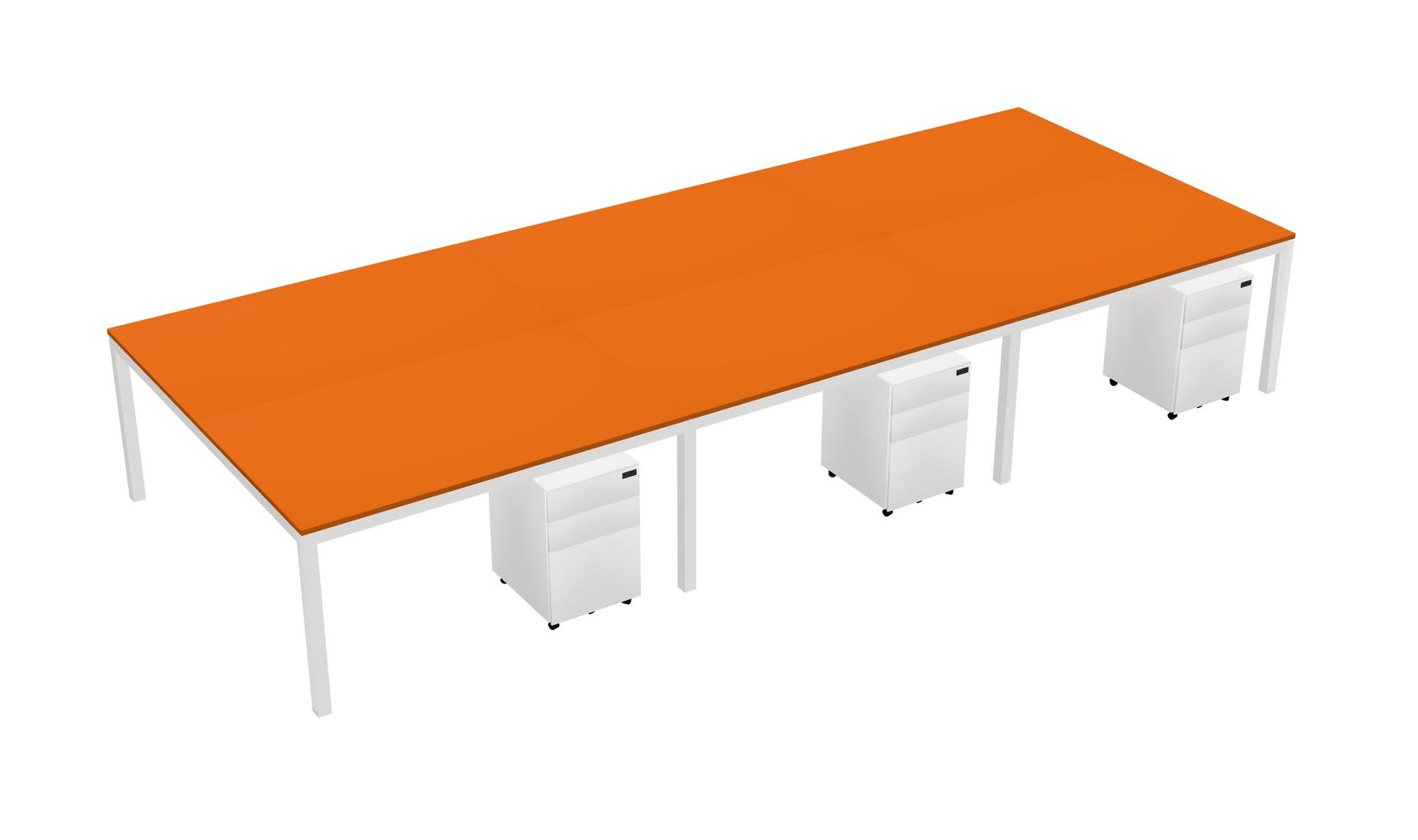 Orange Shared Rectangular Office Desk With Metal Mobile Drawers For 6 Persons