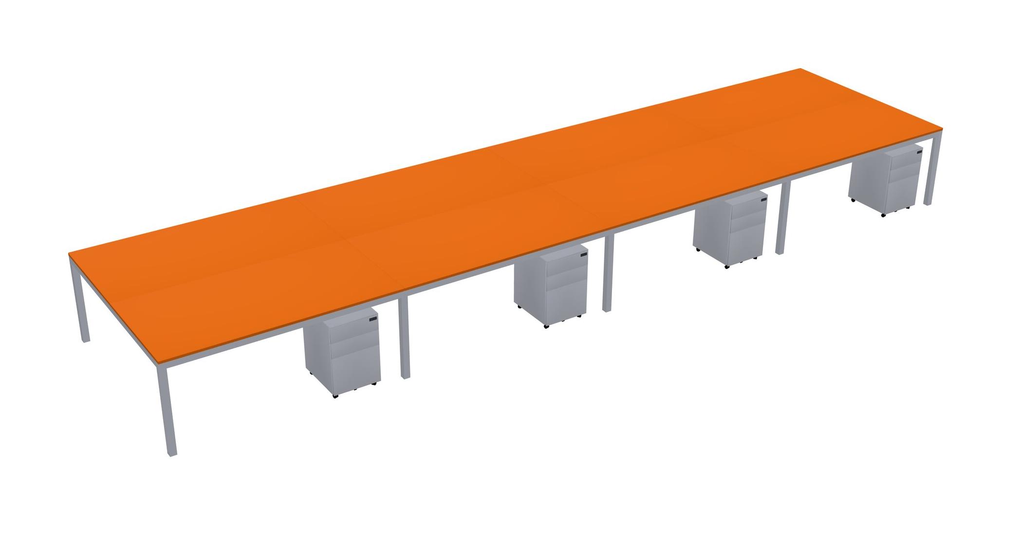 Orange Shared Rectangular Office Desk With Metal Mobile Drawers For 8 Persons