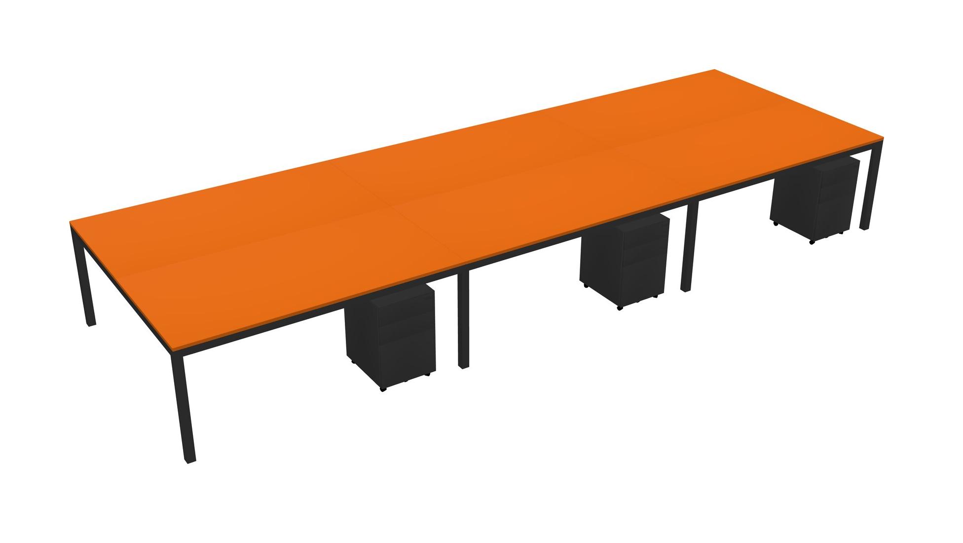 Orange Shared Rectangular Office Desk With Metal Mobile Drawers For 6 Persons