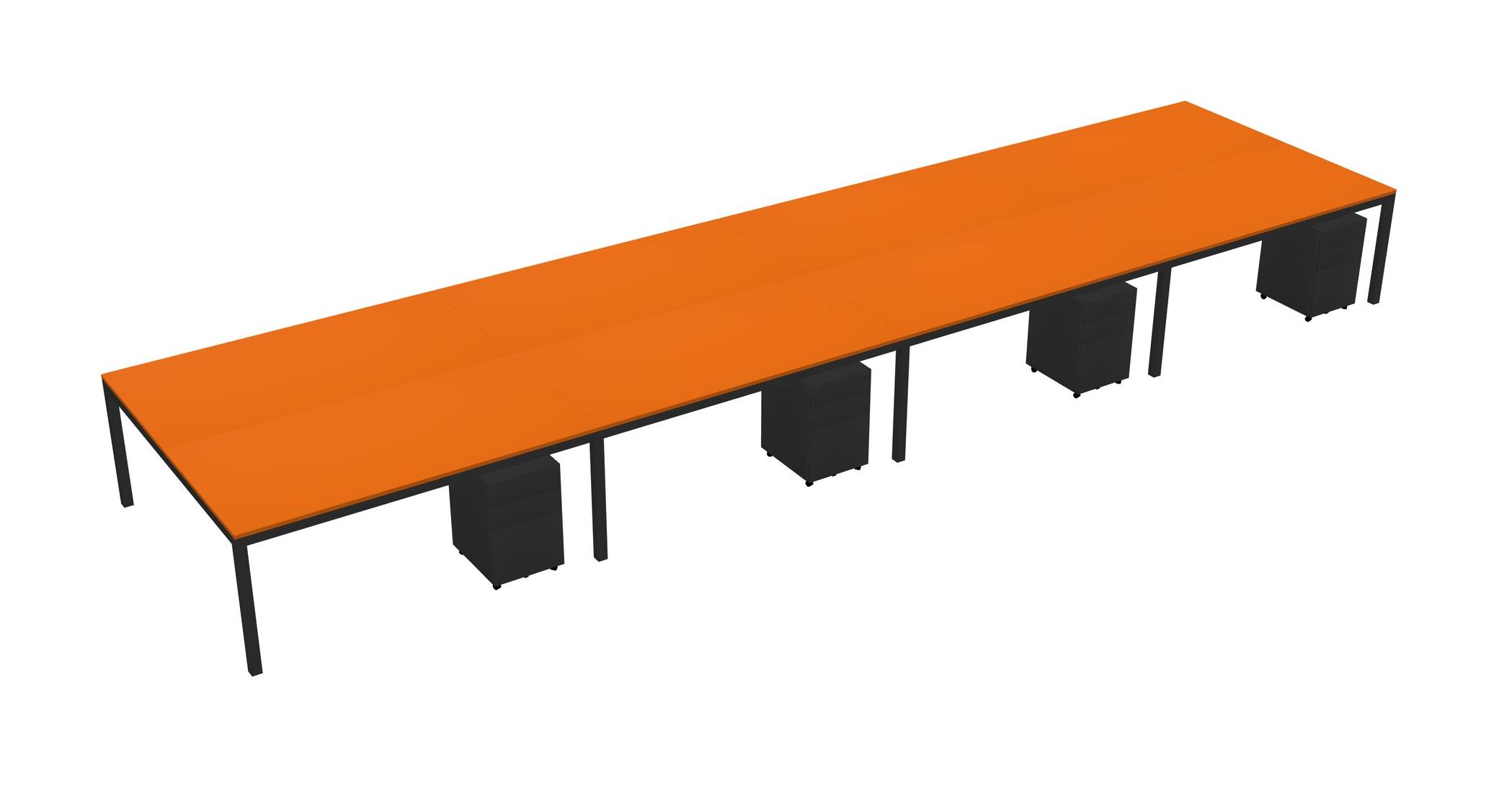 Orange Shared Rectangular Office Desk With Metal Mobile Drawers For 8 Persons