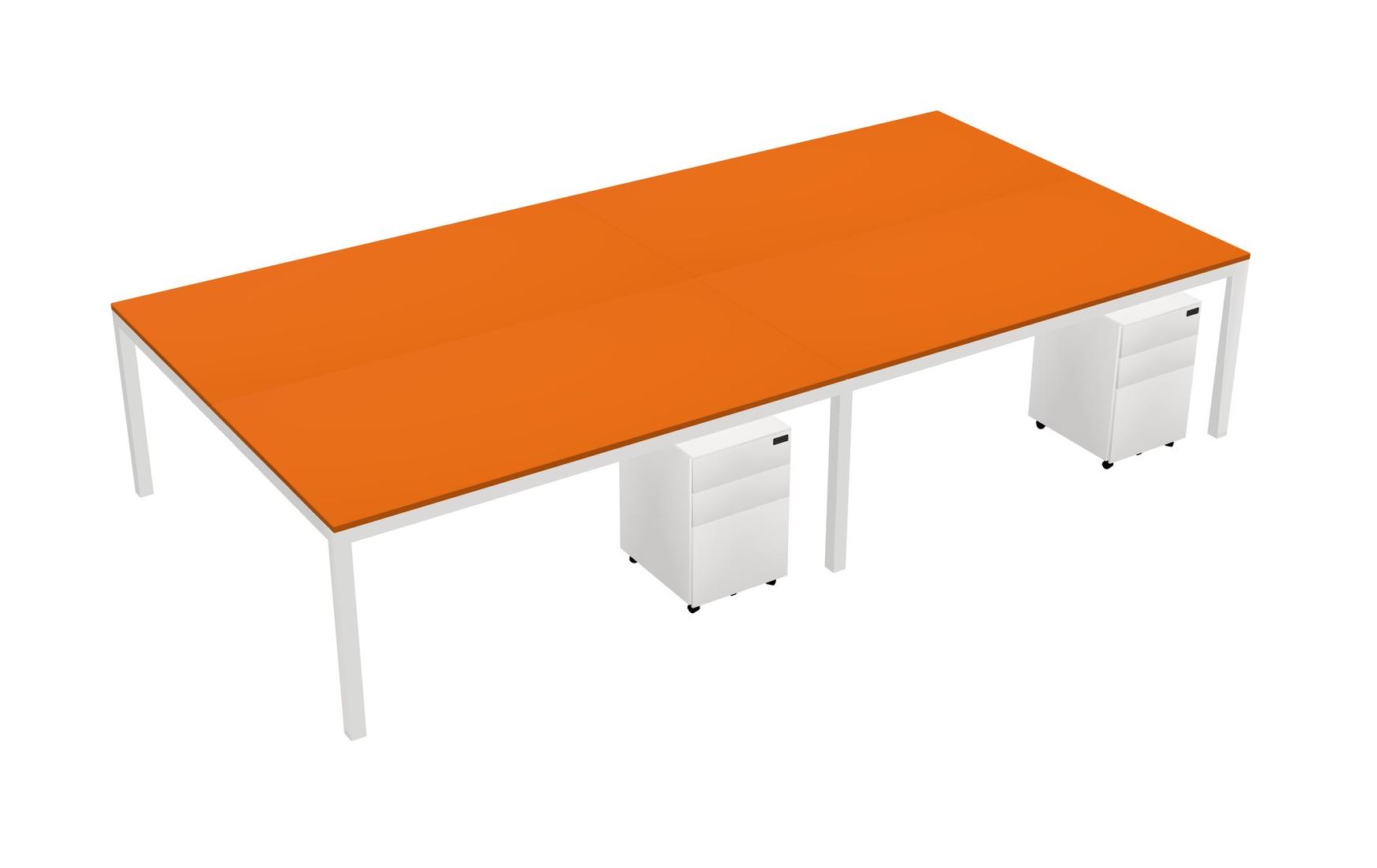 Orange Shared Rectangular Office Desk With Metal Mobile Drawers For 4 Persons
