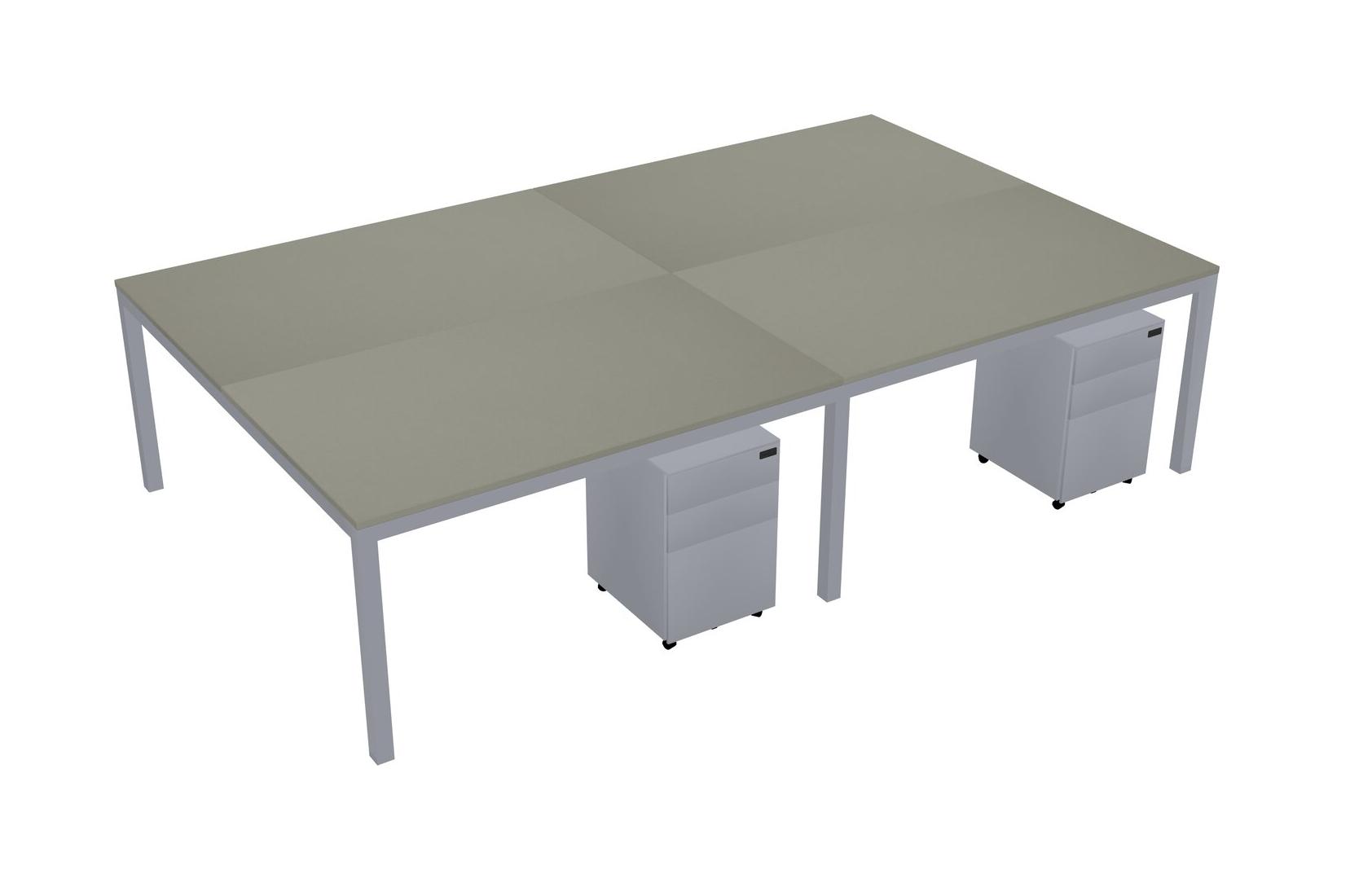 Grey Shadows Shared Rectangular Office Desk With Metal Mobile Drawers For 4 Persons