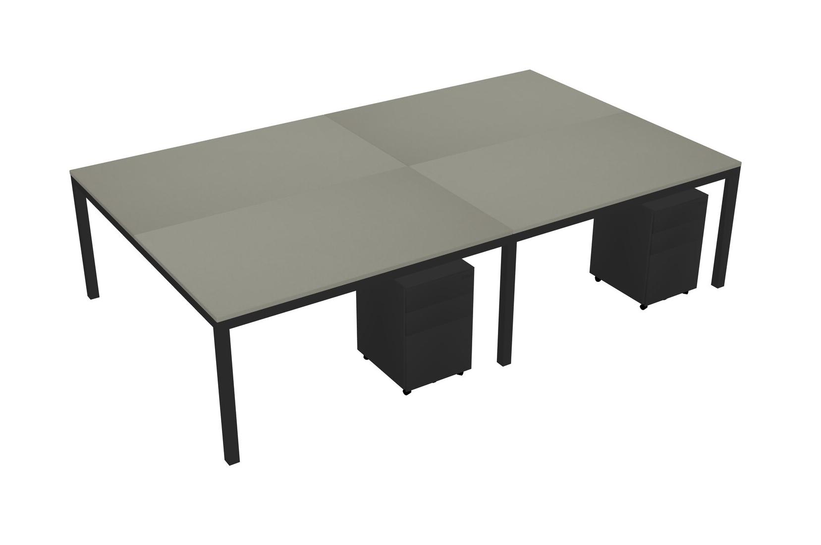 Grey Shadows Shared Rectangular Office Desk With Metal Mobile Drawers For 4 Persons