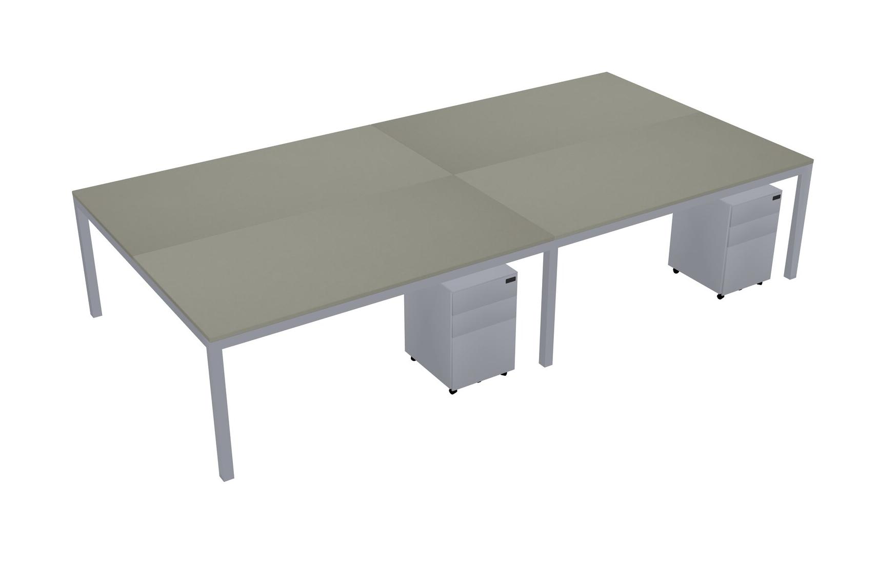 Grey Shadows Shared Rectangular Office Desk With Metal Mobile Drawers For 4 Persons