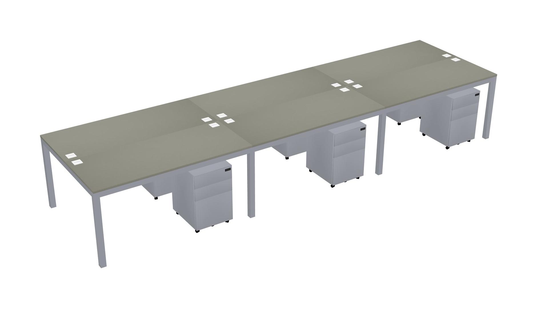 Grey Shadows Shared Rectangular Office Desk With Metal Mobile Drawers For 6 Persons