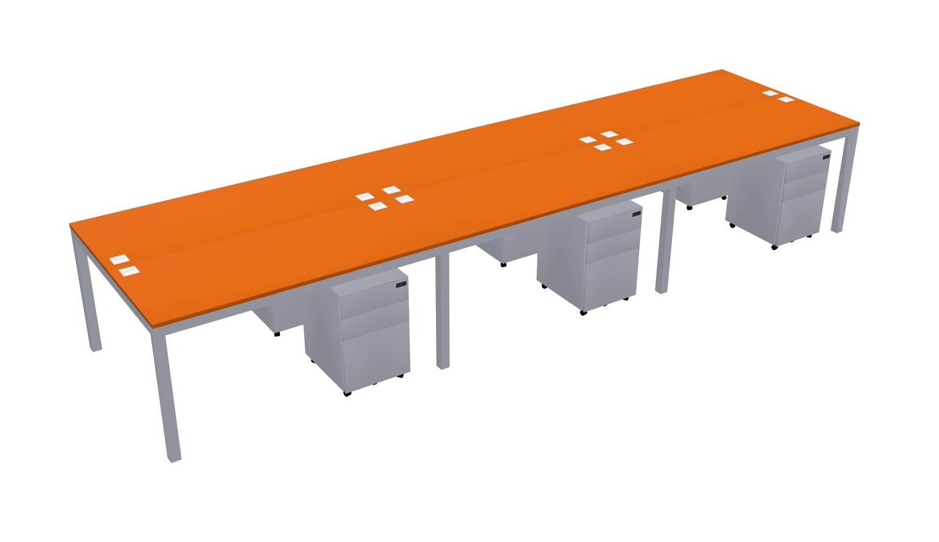 Orange Shared Rectangular Office Desk With Metal Mobile Drawers For 6 Persons