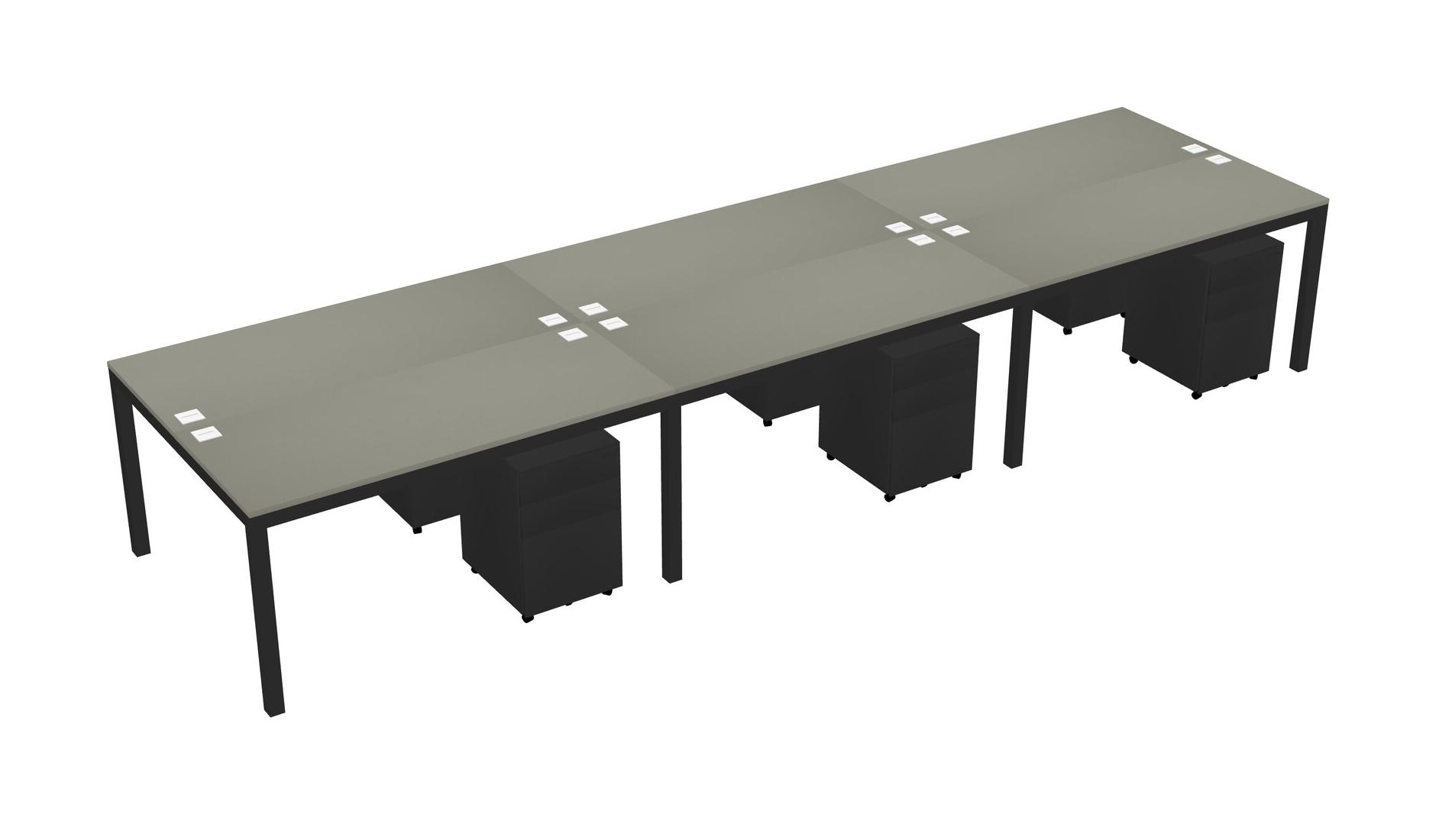 Grey Shadows Shared Rectangular Office Desk With Metal Mobile Drawers For 6 Persons
