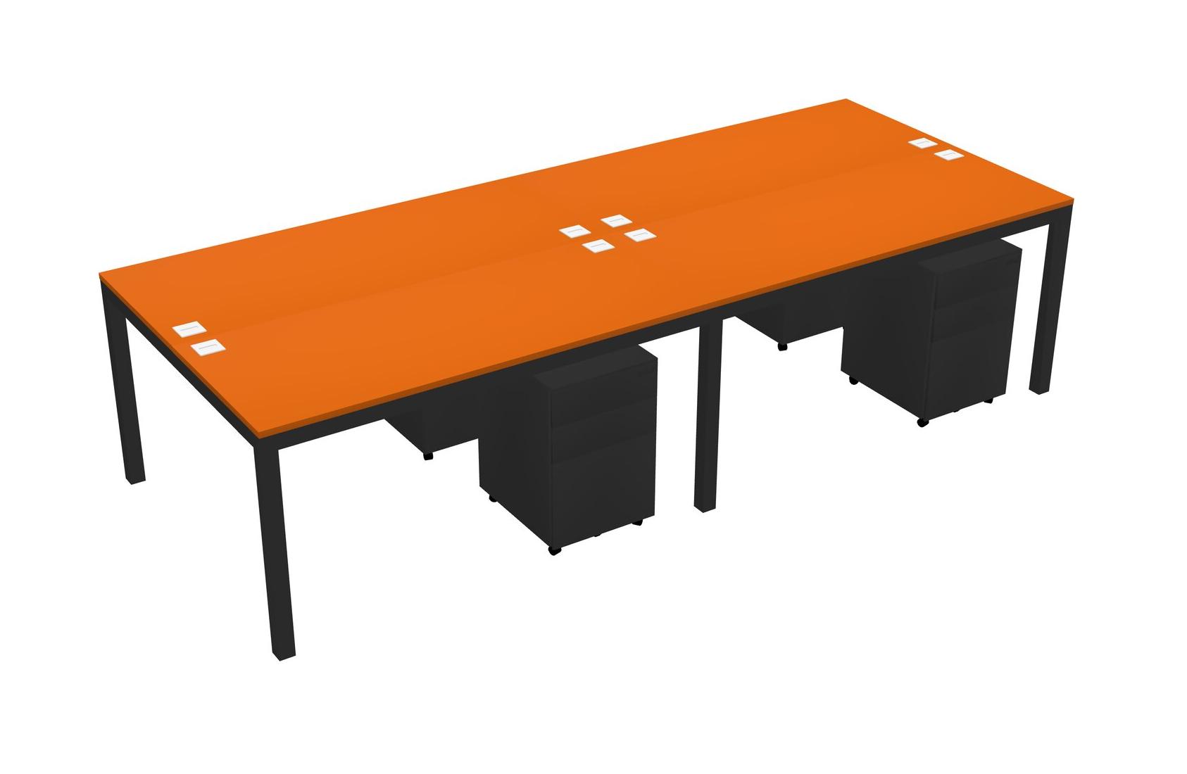 Orange Shared Rectangular Office Desk With Metal Mobile Drawers For 4 Persons