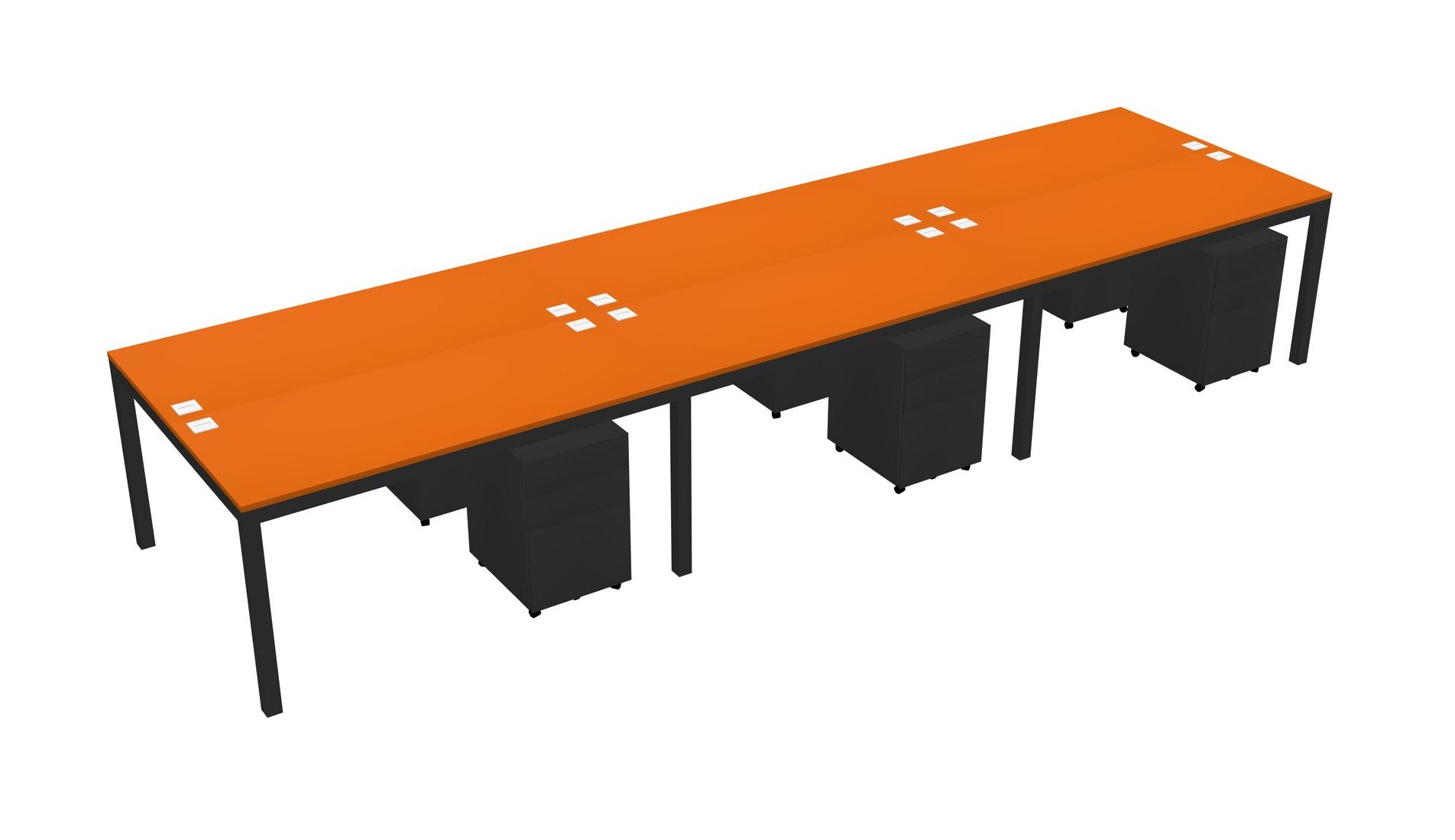 Orange Shared Rectangular Office Desk With Metal Mobile Drawers For 6 Persons