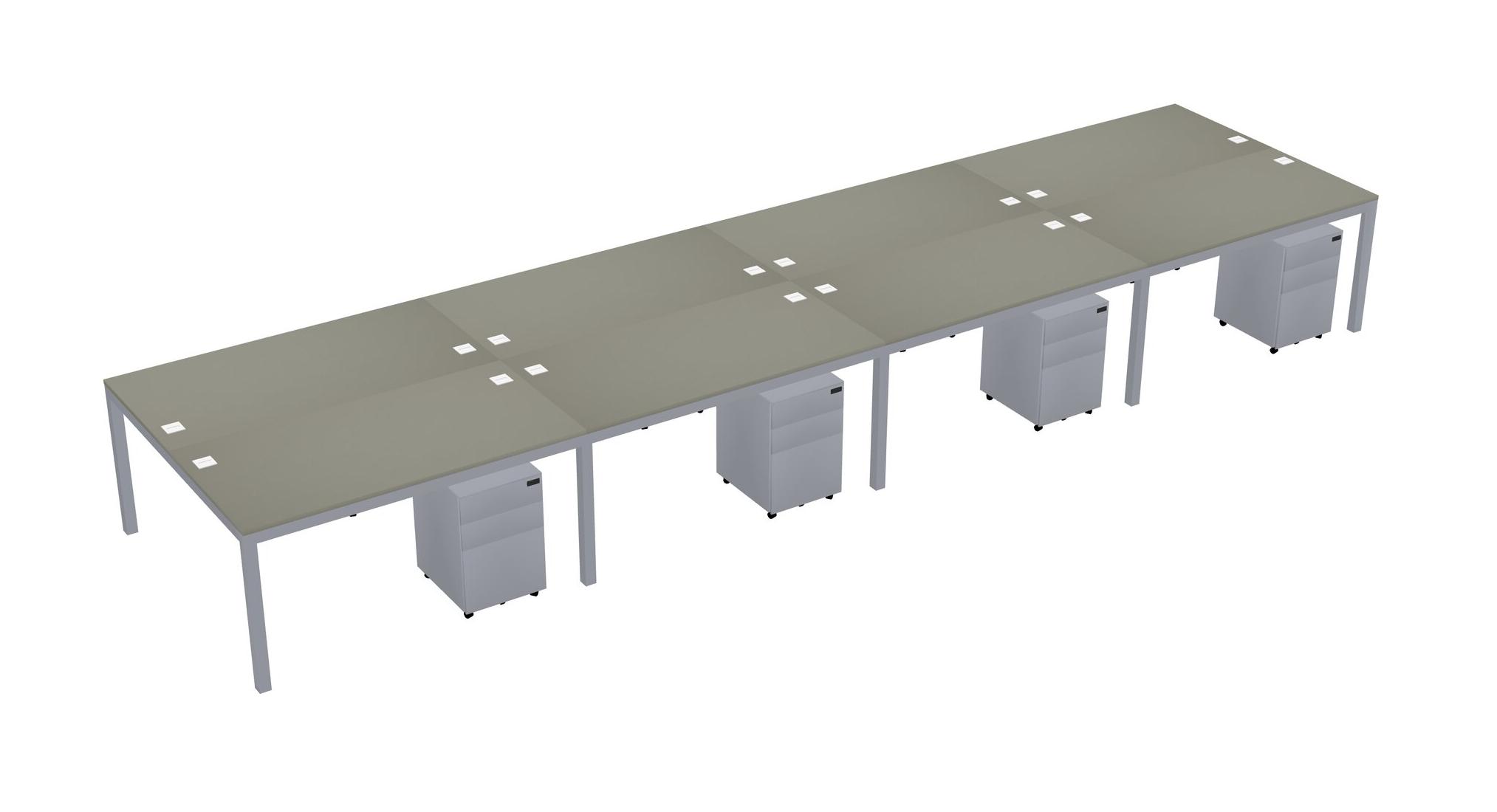 Grey Shadows Shared Rectangular Office Desk With Metal Mobile Drawers For 8 Persons