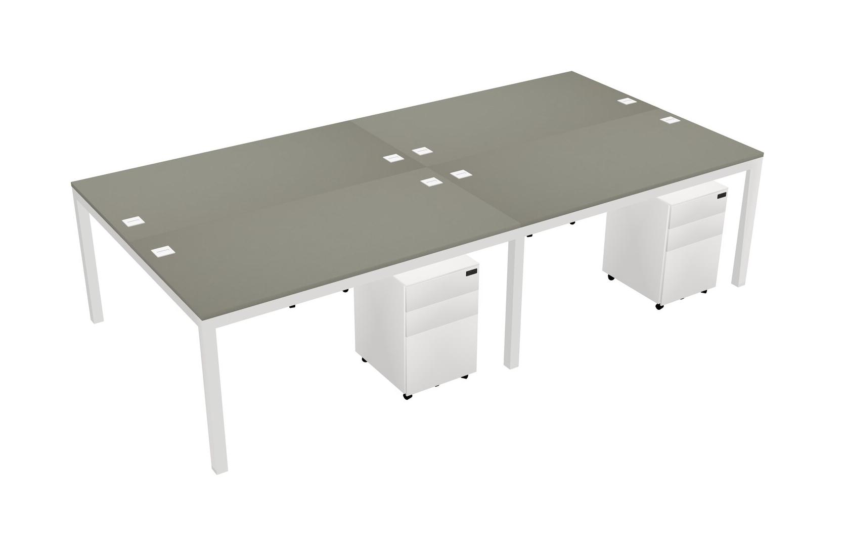 Grey Shadows Shared Rectangular Office Desk With Metal Mobile Drawers For 4 Persons