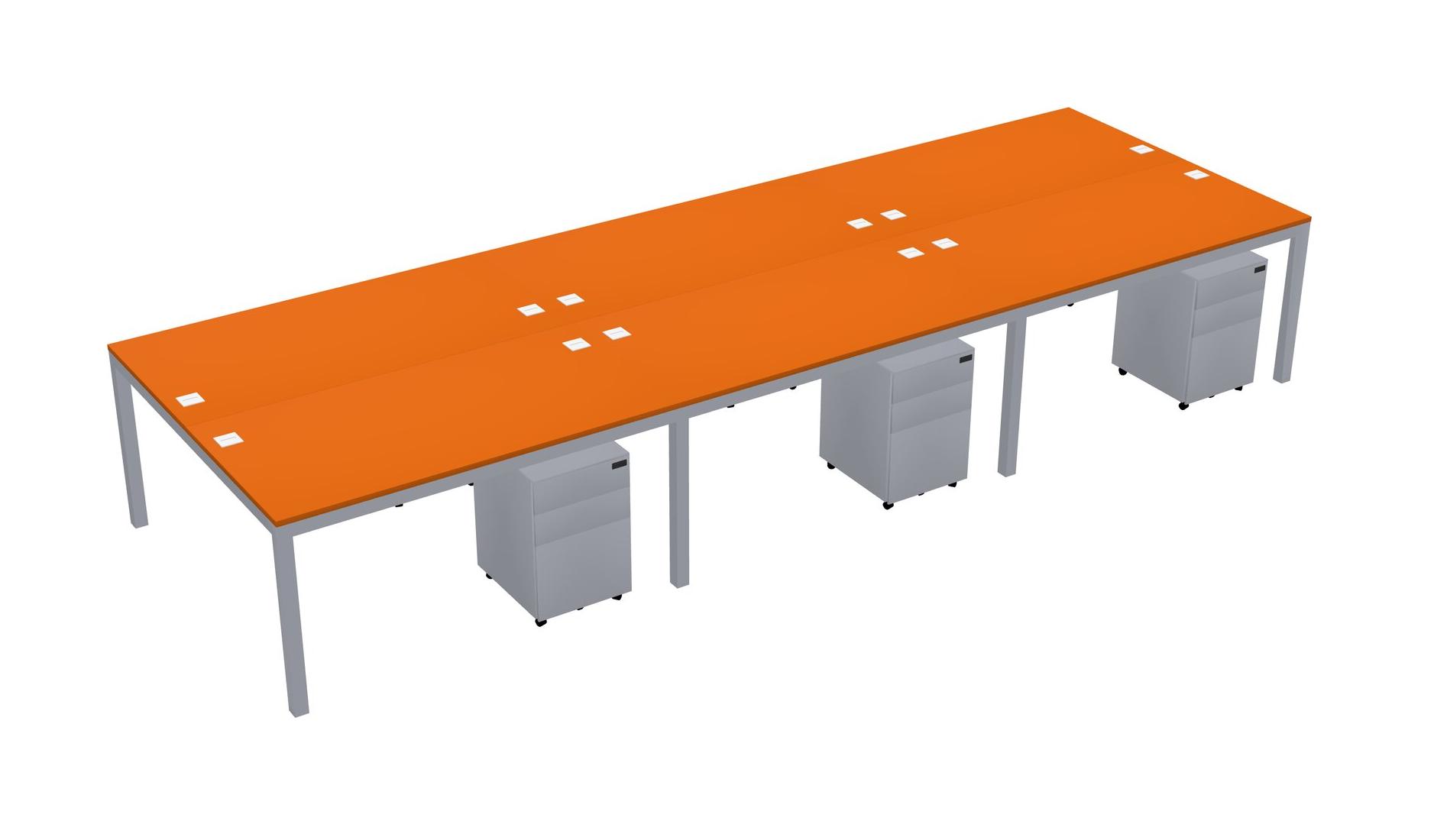 Orange Shared Rectangular Office Desk With Metal Mobile Drawers For 6 Persons