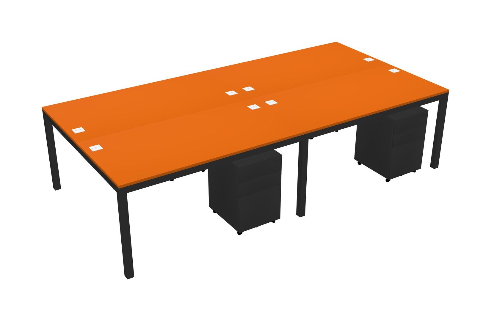 Orange Shared Rectangular Office Desk With Metal Mobile Drawers For 4 Persons