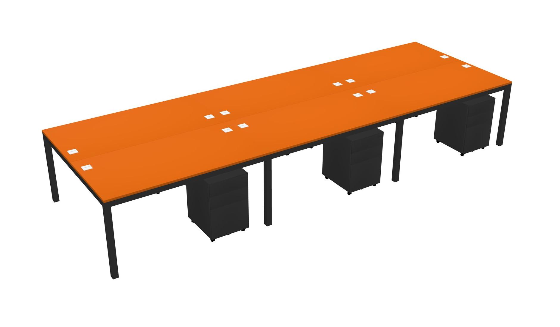 Orange Shared Rectangular Office Desk With Metal Mobile Drawers For 6 Persons