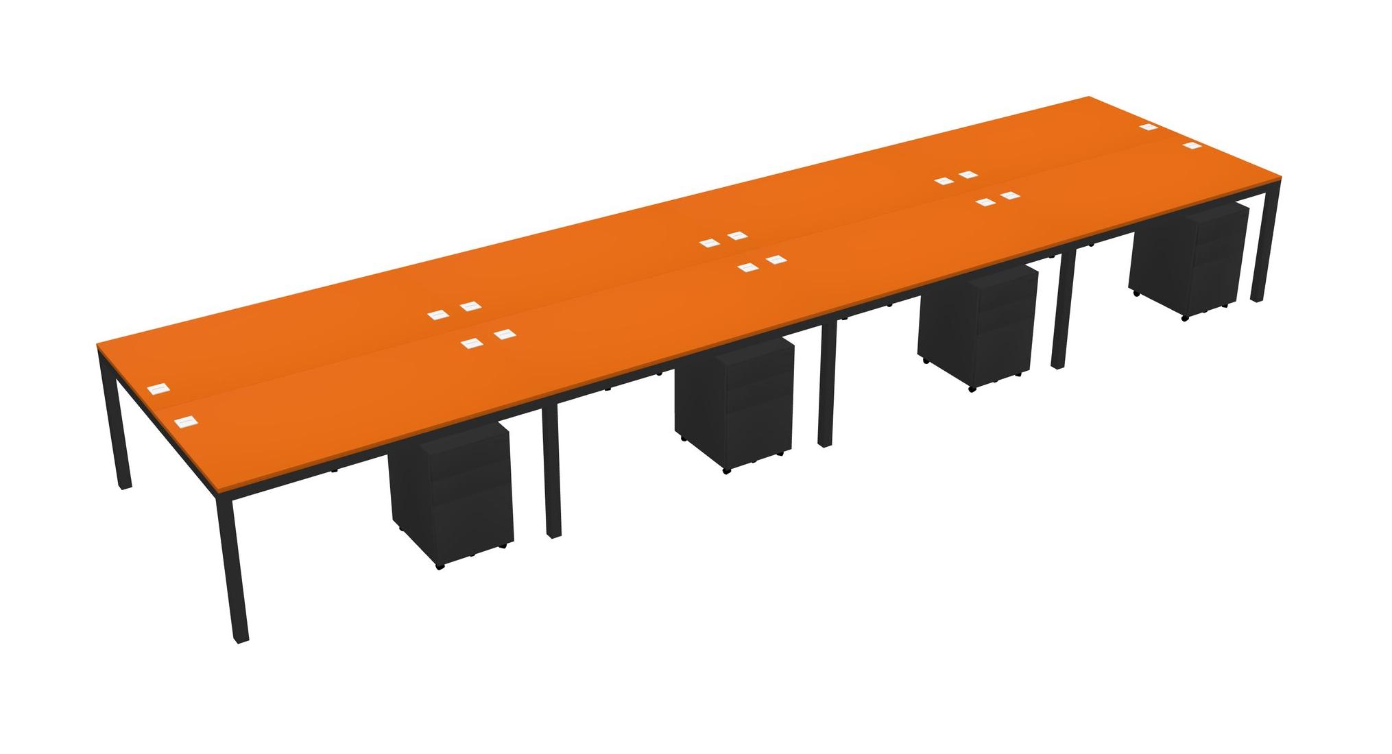 Orange Shared Rectangular Office Desk With Metal Mobile Drawers For 8 Persons
