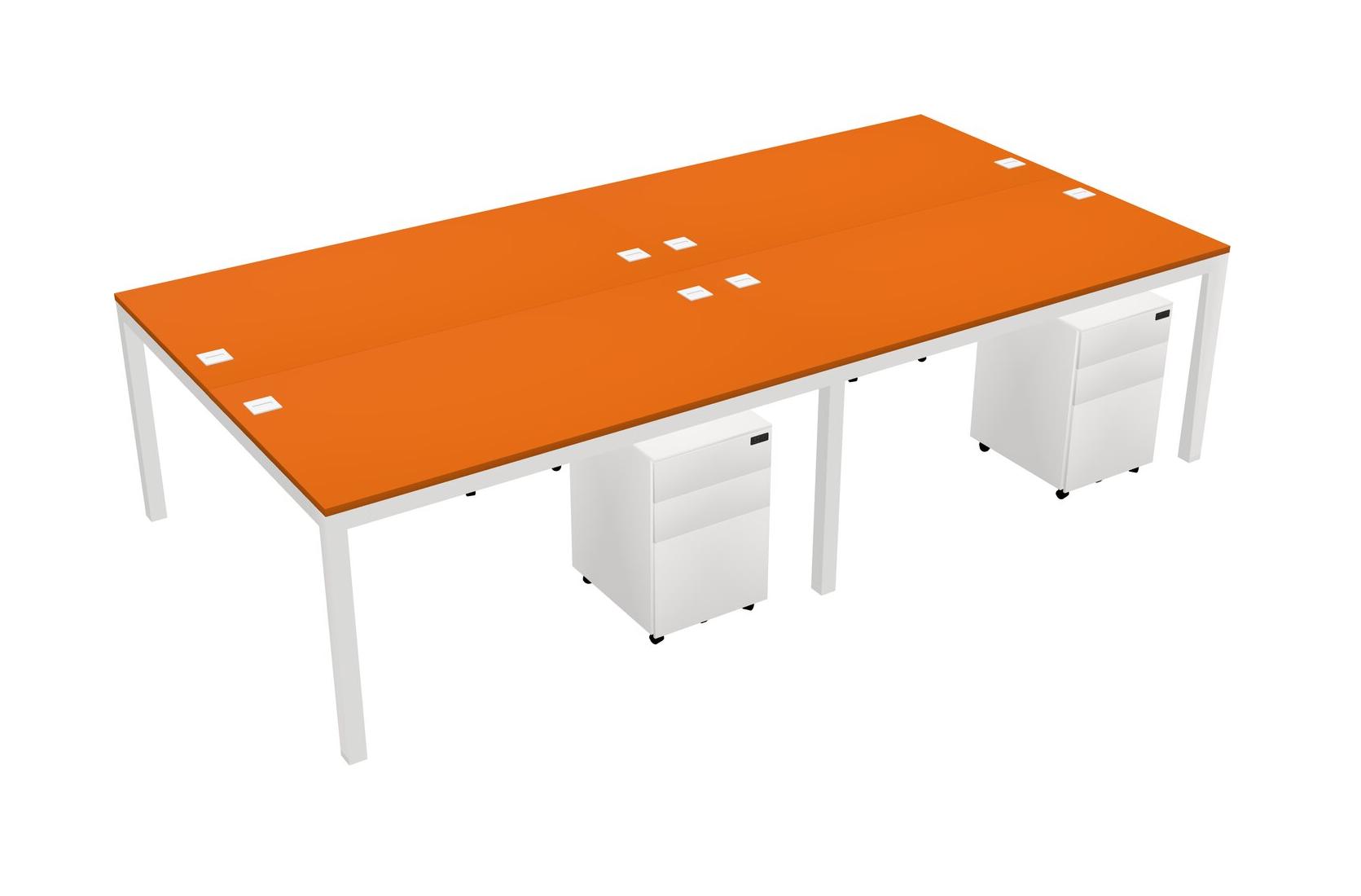 Orange Shared Rectangular Office Desk With Metal Mobile Drawers For 4 Persons