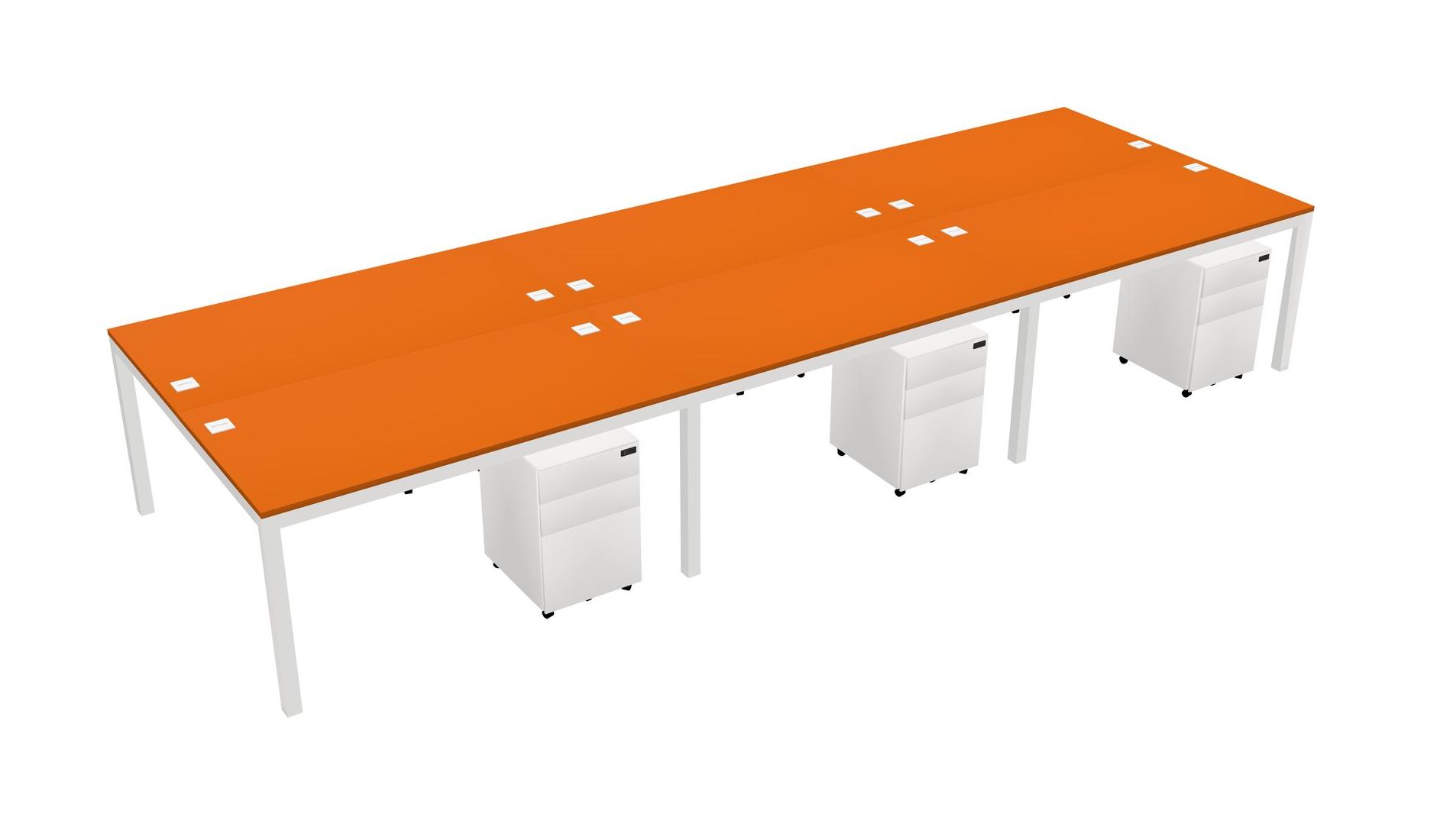 Orange Shared Rectangular Office Desk With Metal Mobile Drawers For 6 Persons