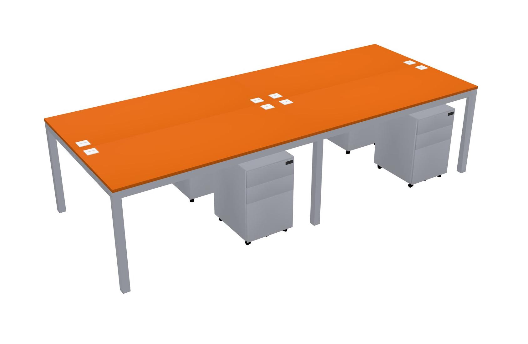 Orange Shared Rectangular Office Desk With Metal Mobile Drawers For 4 Persons