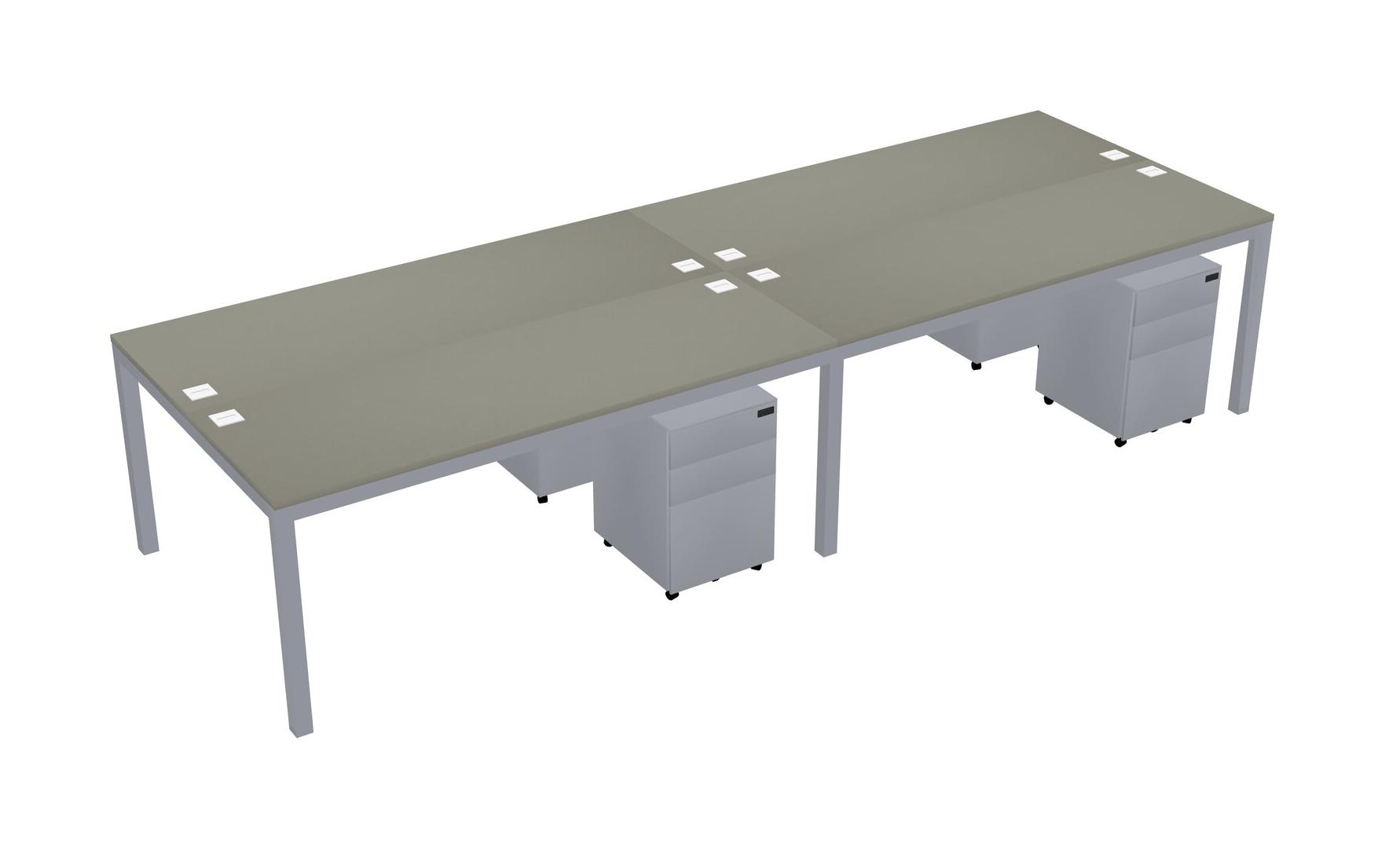 Grey Shadows Shared Rectangular Office Desk With Metal Mobile Drawers For 4 Persons