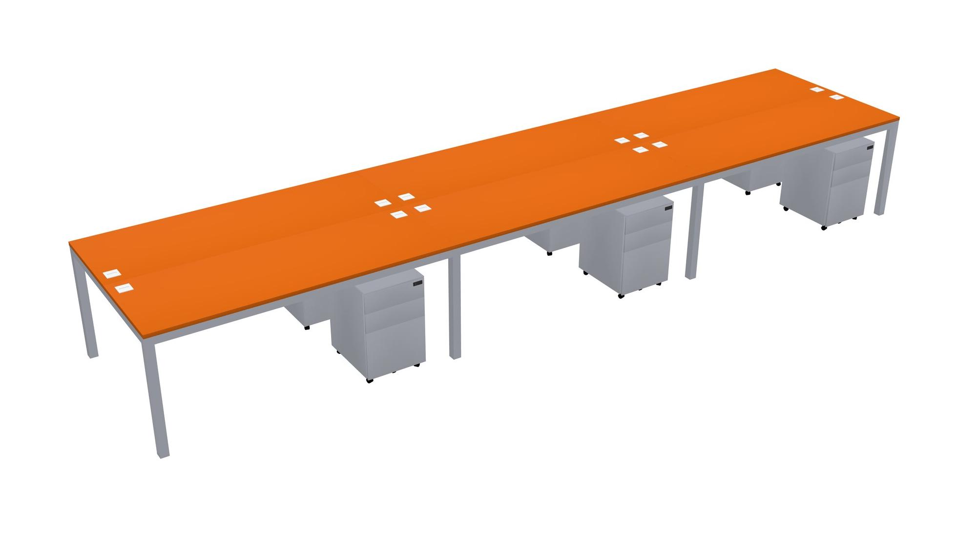 Orange Shared Rectangular Office Desk With Metal Mobile Drawers For 6 Persons