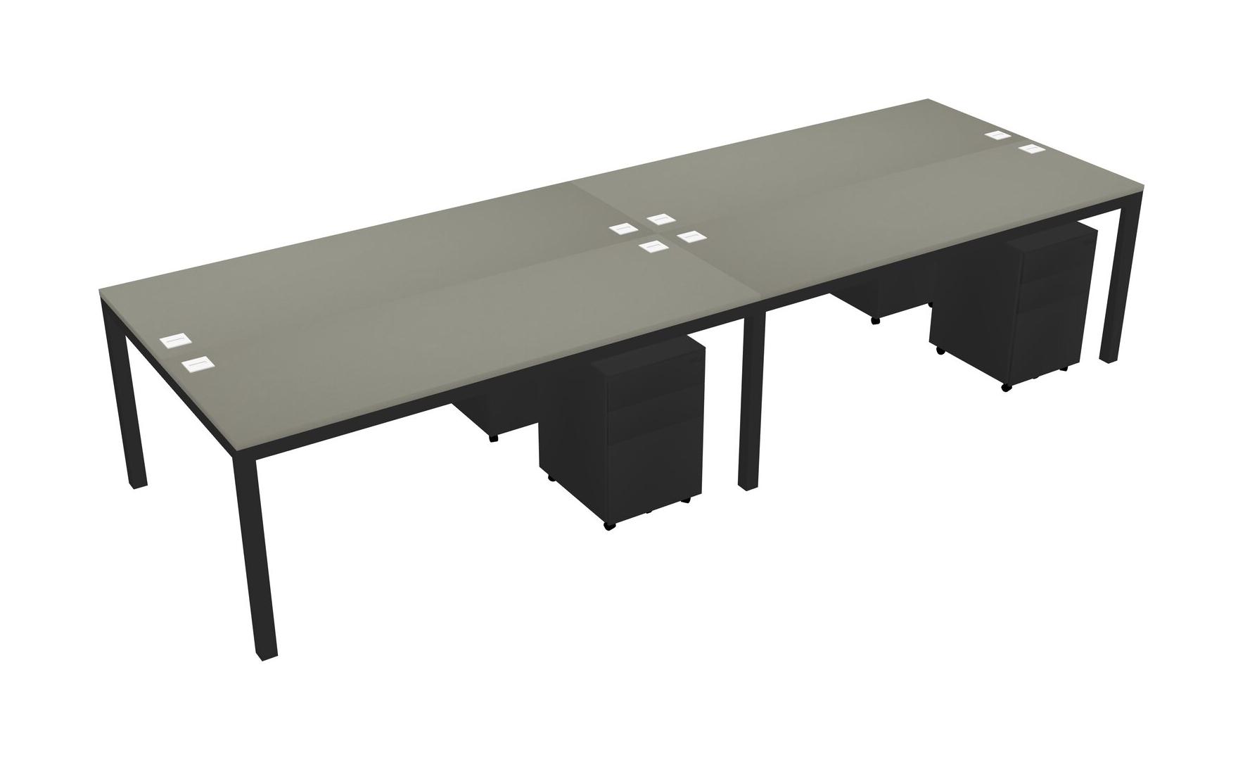Grey Shadows Shared Rectangular Office Desk With Metal Mobile Drawers For 4 Persons